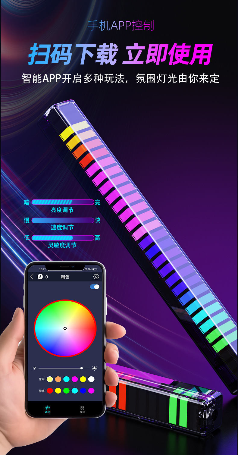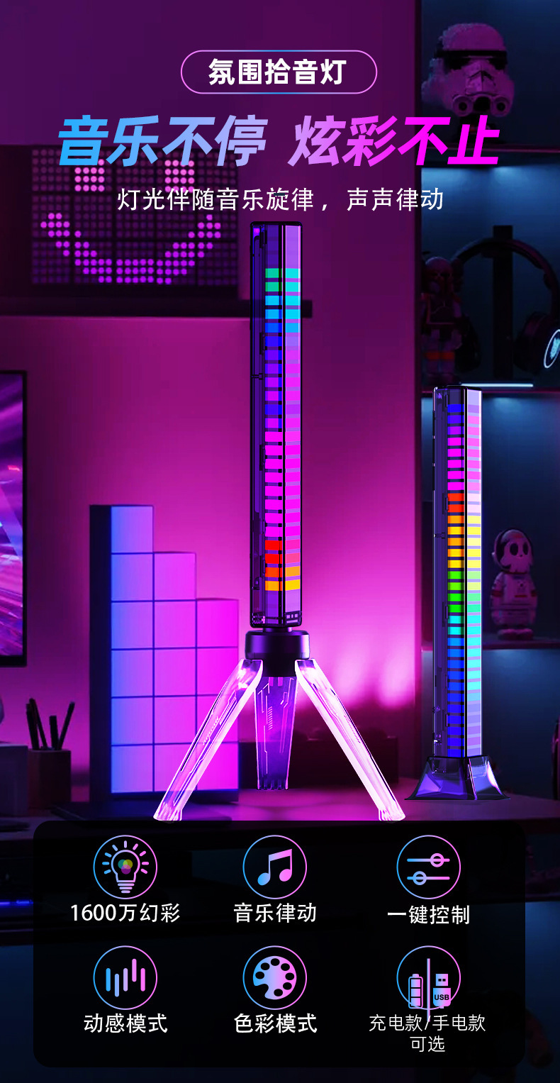 RGB атмосферный свет для компьютера, голосовое управление, аудио для киберспорта, 3D музыкальный ритм, LED цветной индукционный свет