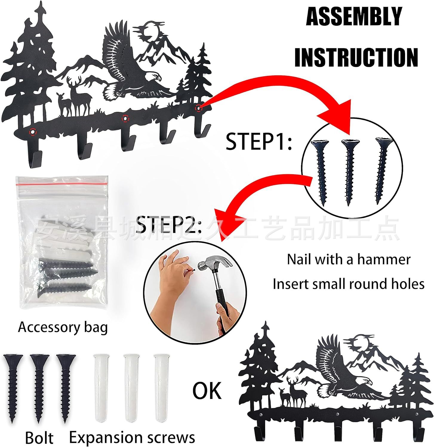 Металлический крючок для одежды в виде орла на стену с 5 крючками и вешалкой для ключей и рюкзаков