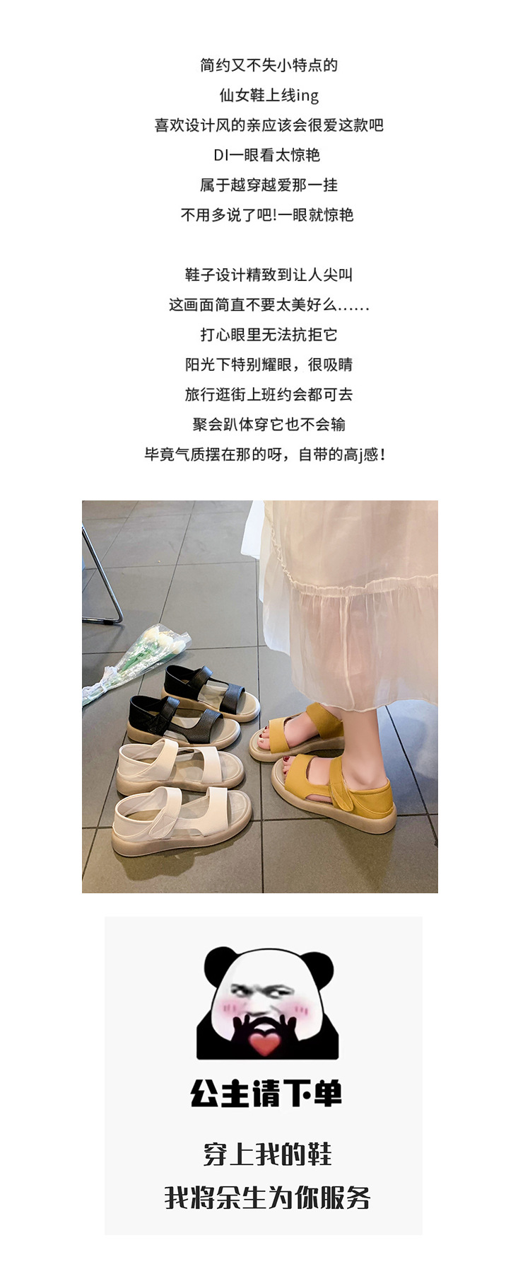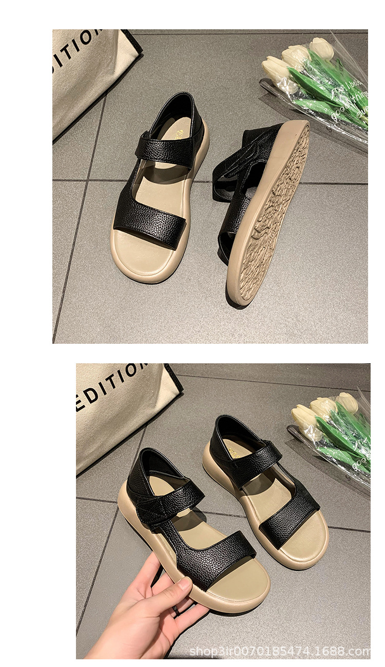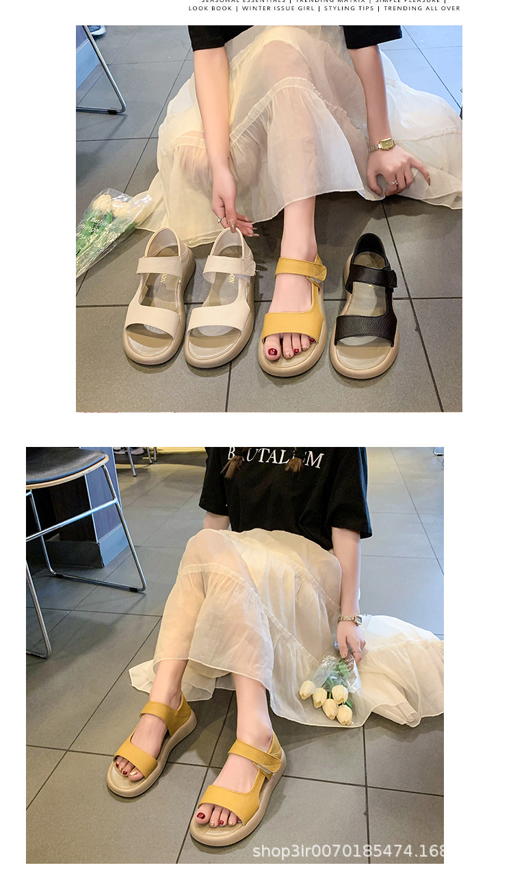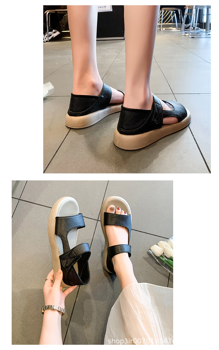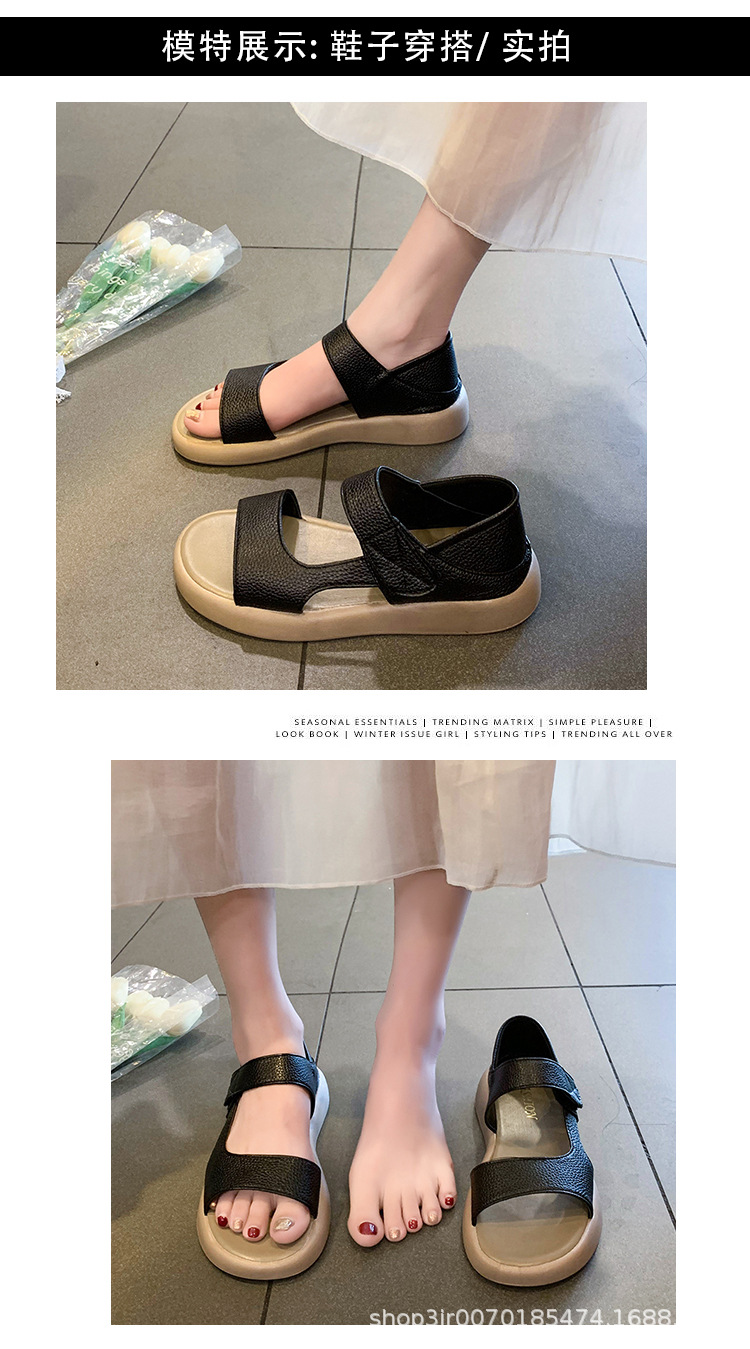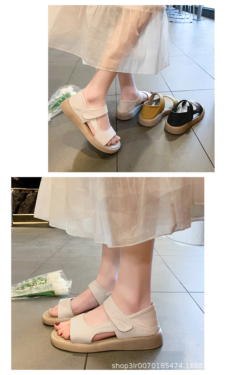 Кросс-бордерные большие сандалии с велкро для женщин, летние новые толстосоленные круглые сандалии, стиль феи