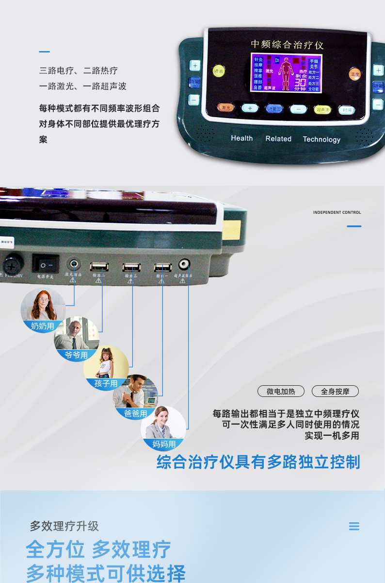 Многофункциональный массажный терапевтический прибор с электронным средним диапазоном для всего тела, домашний электролечебный массажер, пульсовой прибор для терапии среднего диапазона