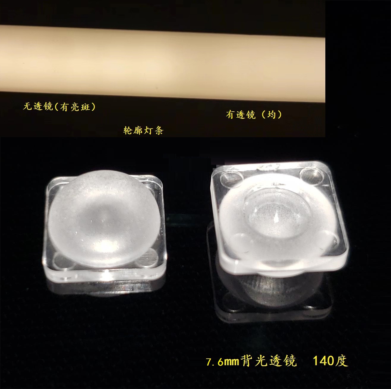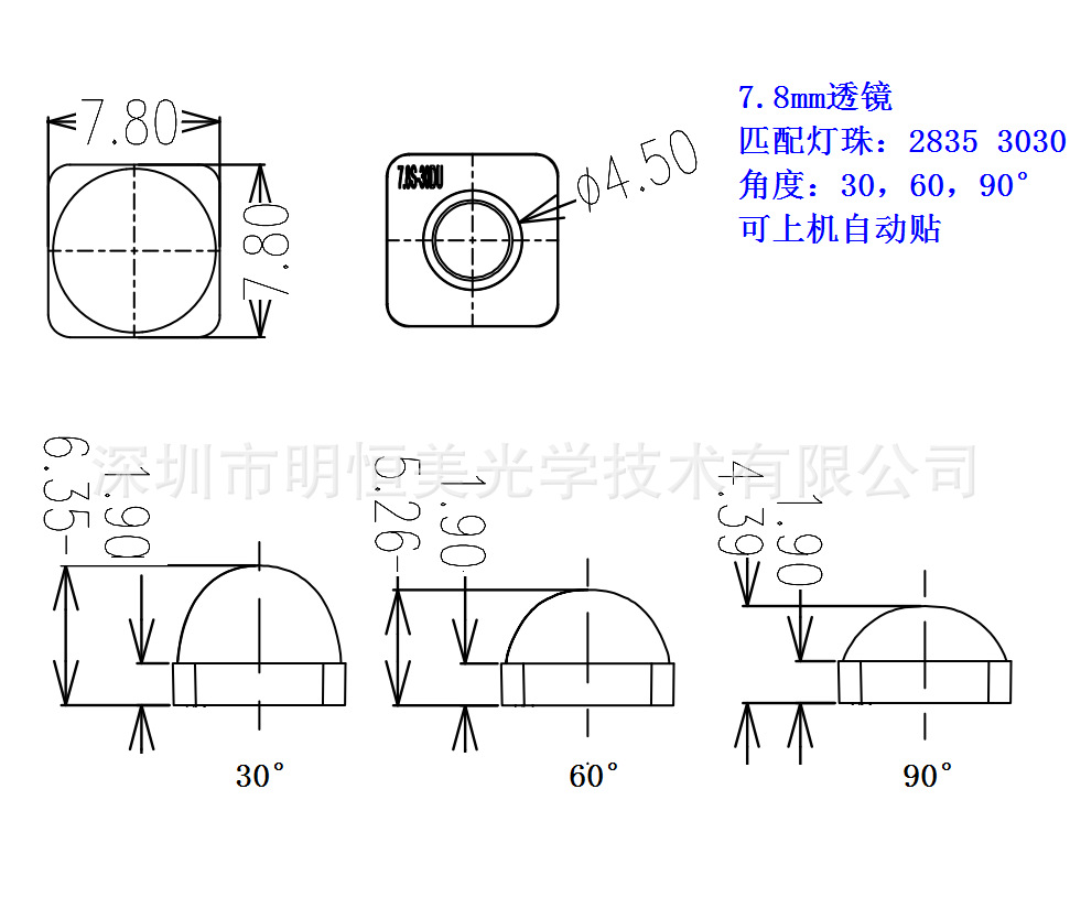 本系列是7.6mm透镜,可以配灯珠2835,3030,有方孔,圆孔,刚好套住灯珠上定位,有专业贴透镜厂配合贴透镜