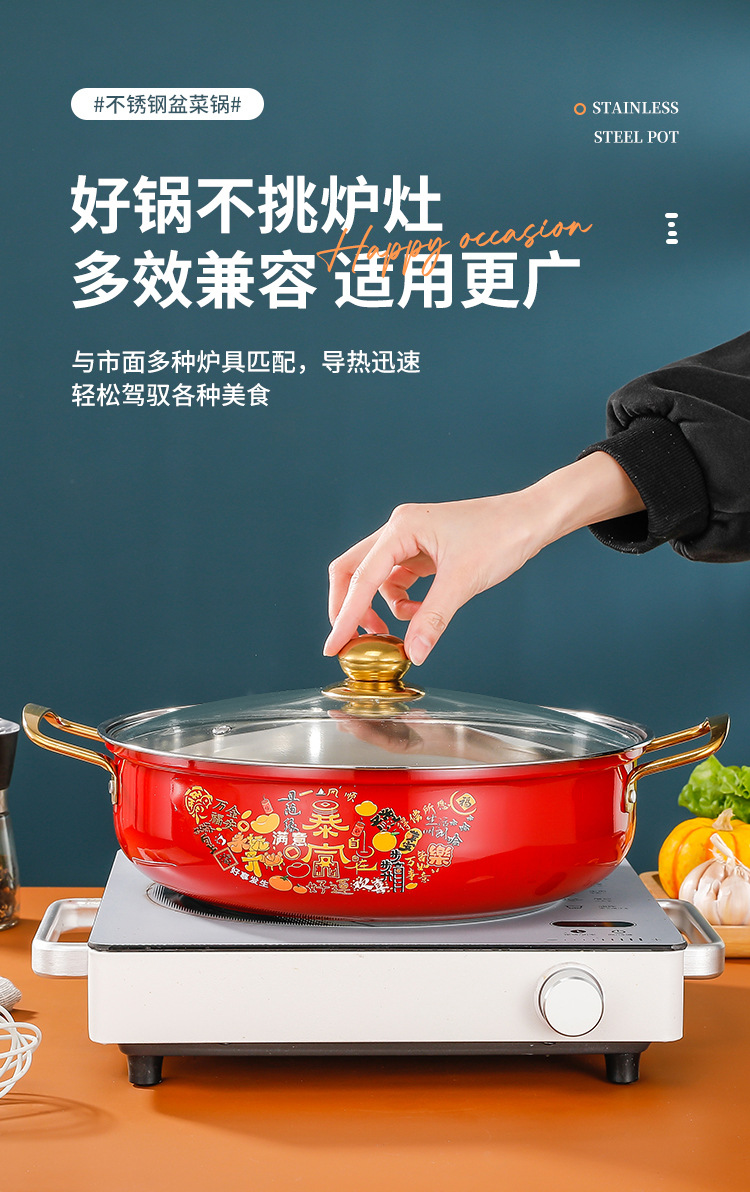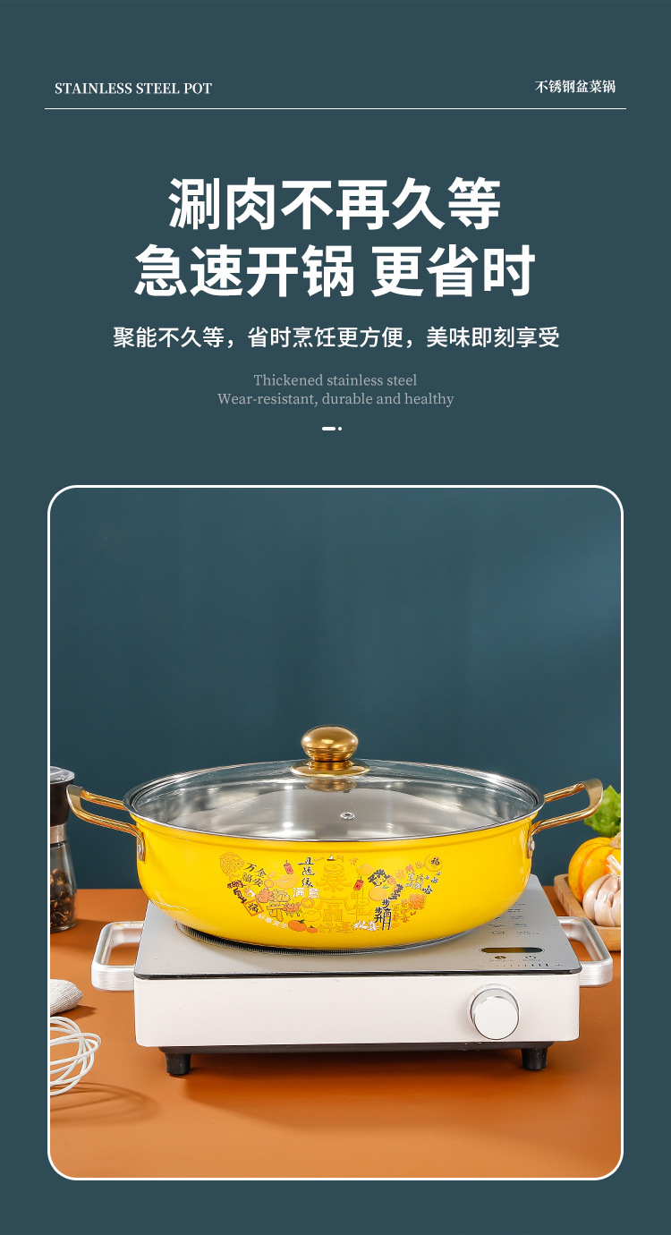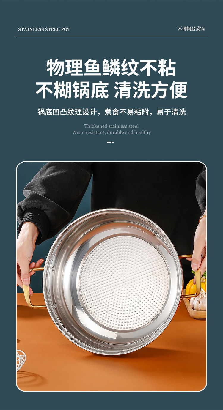 Нержавеющая сталь, овощная кастрюля, кастрюля для морепродуктов, толстая кастрюля с крышкой, антипригарное дно, большая кастрюля для супа