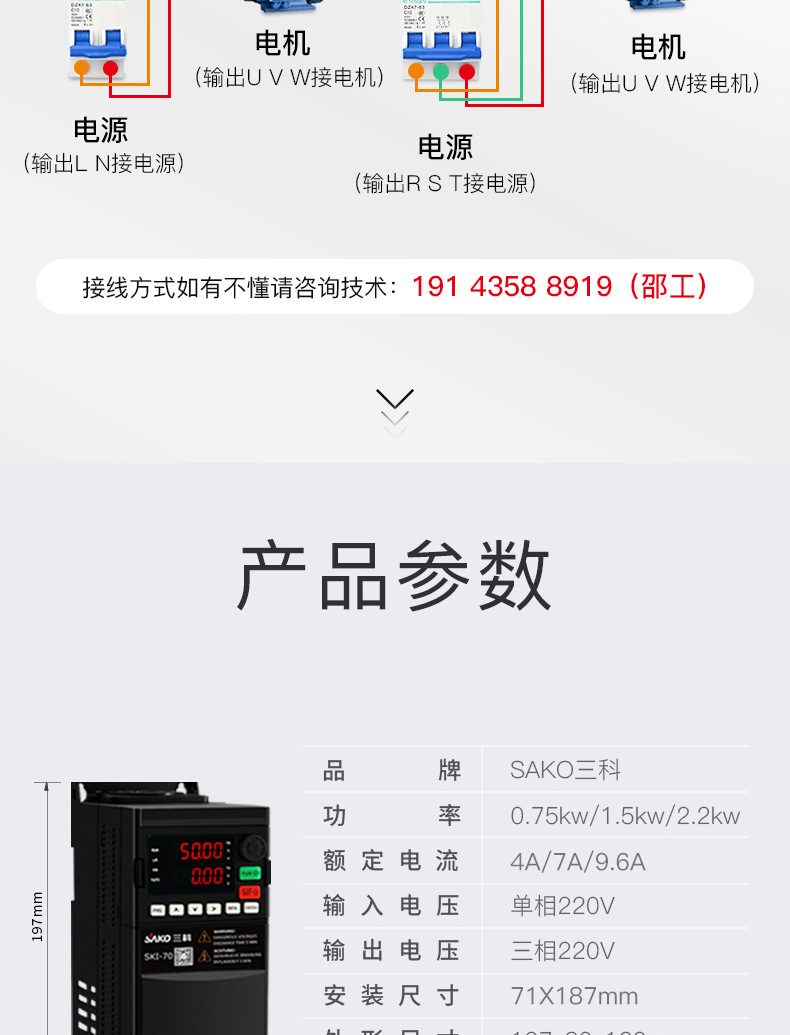 Адаптация мощности двигателя 0.75/1.5/202/3/4/5.5/7.5kw