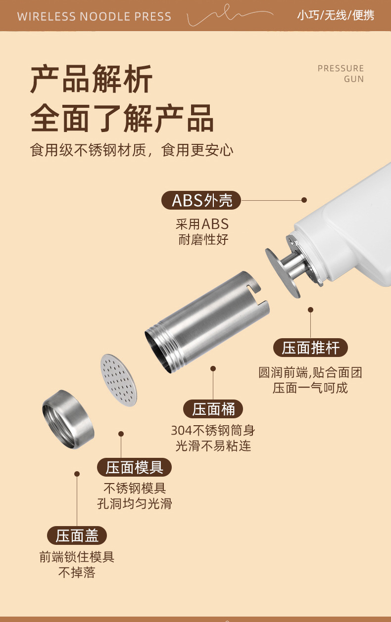 Кросс-браунская полностью автоматическая машина для лапши, ручной электрический пресс для лапши, маленький пистолет для лапши из нержавеющей стали 304