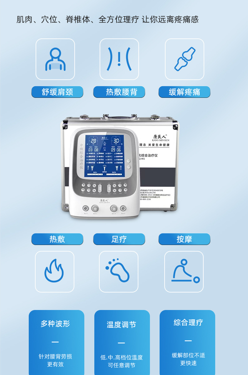 Прибор для импульсной электролечения с средней частотой, терапевтический прибор для акупунктуры, медицинский массажер для горячих компрессов поясничного отдела, комплексная реабилитация, лазер