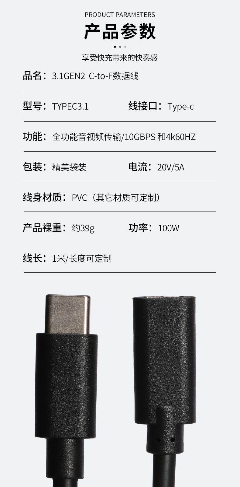 Номер товара TYPEC3.1 male and female extension cord black PVC