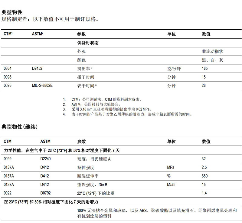 ·单组分粘合剂/密封剂。 ·在室温下接触到空气中的水分时固化。 ·烷氧基固化体系。 ·非下垂,糊状一致性。 ·轻松涂抹。 ·可在坚韧、柔软的橡胶上固化。 ·拥有对多种基材的优异附着力。 ·脱醇型:固化副产物为醇类,对基材无腐蚀,环保可靠。 ·耐候性:优异的耐UV性,并且在-40℃~180℃下长期保持性能稳定。 ·高拉伸率:断裂拉伸率达到680%。