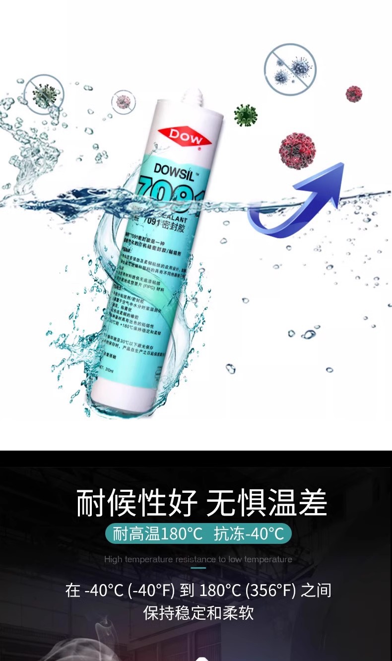 品牌:道康宁 型号:张家港产7091 流动状态:糊状 硬度(shoreA):32A 断裂拉伸率:680%