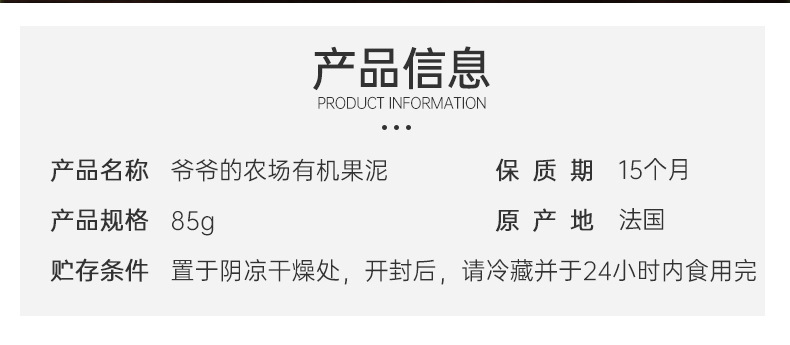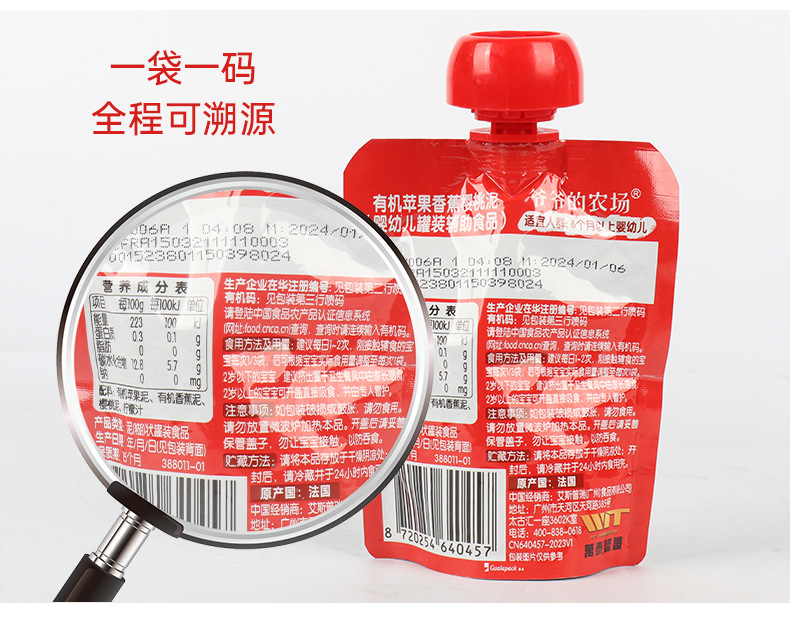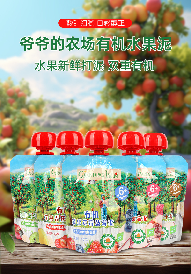 📦 | As of october 26th, organic apple, peach, banana, and raspberry puree, 85g/bag, shelf life: 15 months | 4шт: ¥13.50, 24шт: ¥13.00, 48шт: ¥12.50 | 1076 | 5938293041016 | |