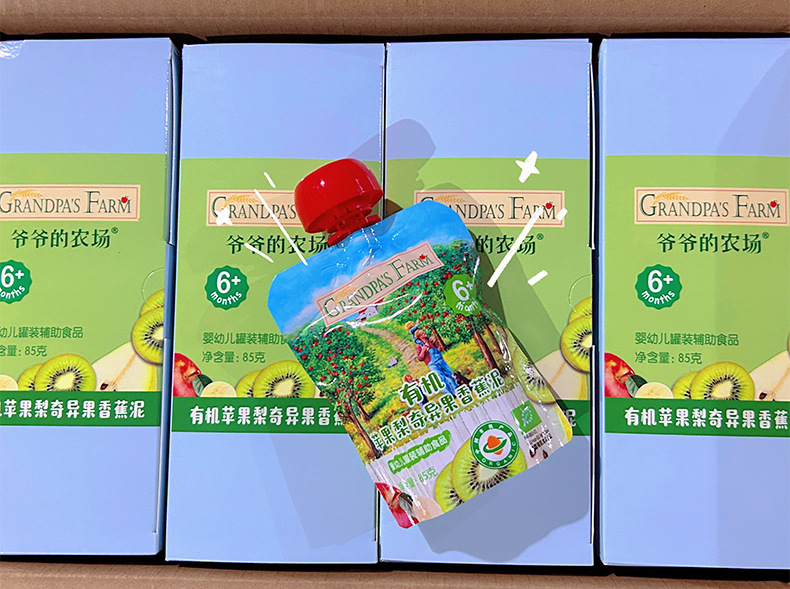 📦 | As of august 26, 2018, organic apple, pear, banana and peach puree 85g/bag, shelf life 15 months | 4шт: ¥13.50, 24шт: ¥13.00, 48шт: ¥12.50 | 1050 | 6082611603777 | |
