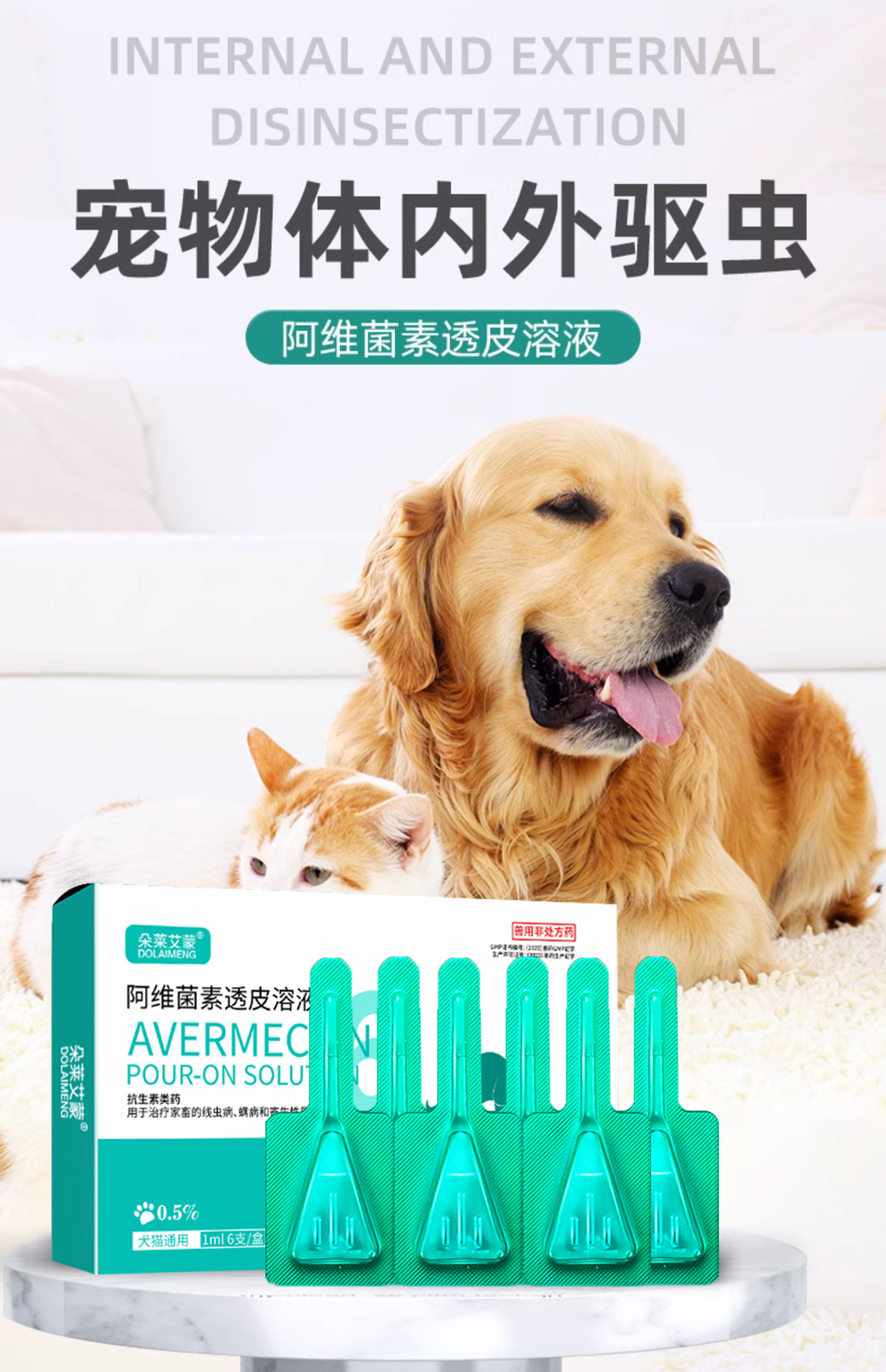 Антигельминтный препарат для кошек и собак, внутренний и внешний инсектицид, удаление клещей, блох и вшей, абамектиновый трансдермальный раствор