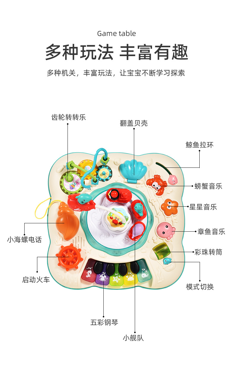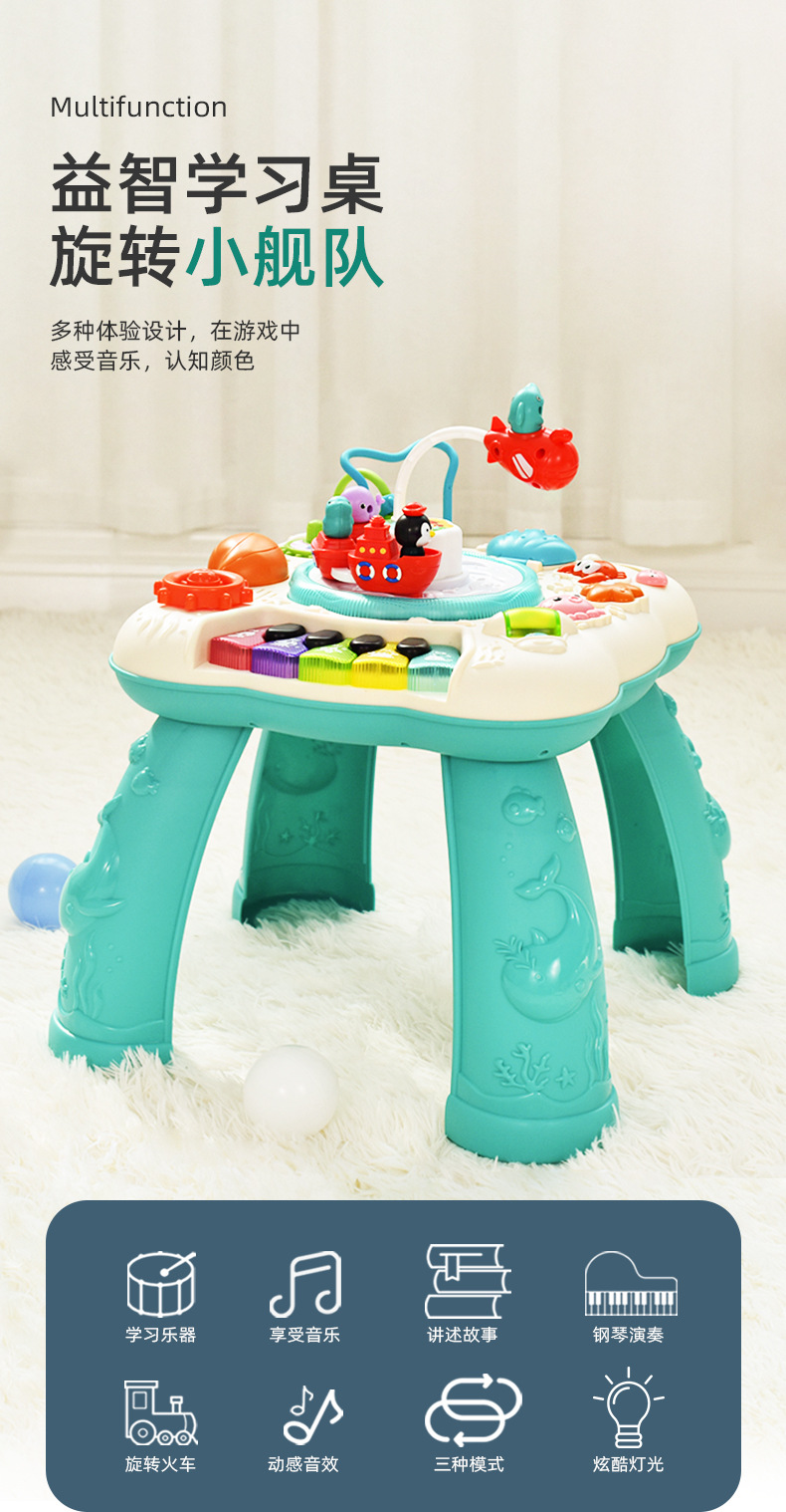 Новый обучающий стол для детей 0-3 лет, многофункциональная музыкальная игрушка с вращающимся флотом