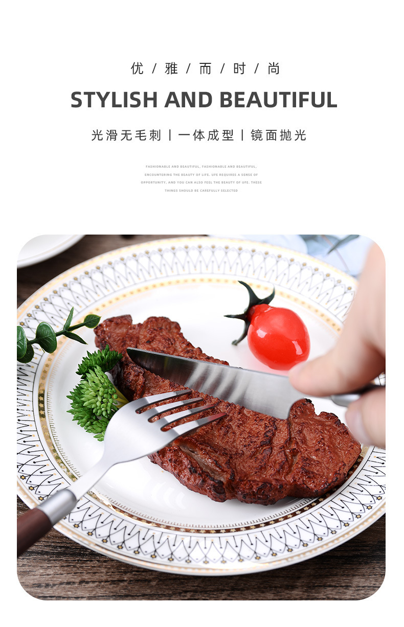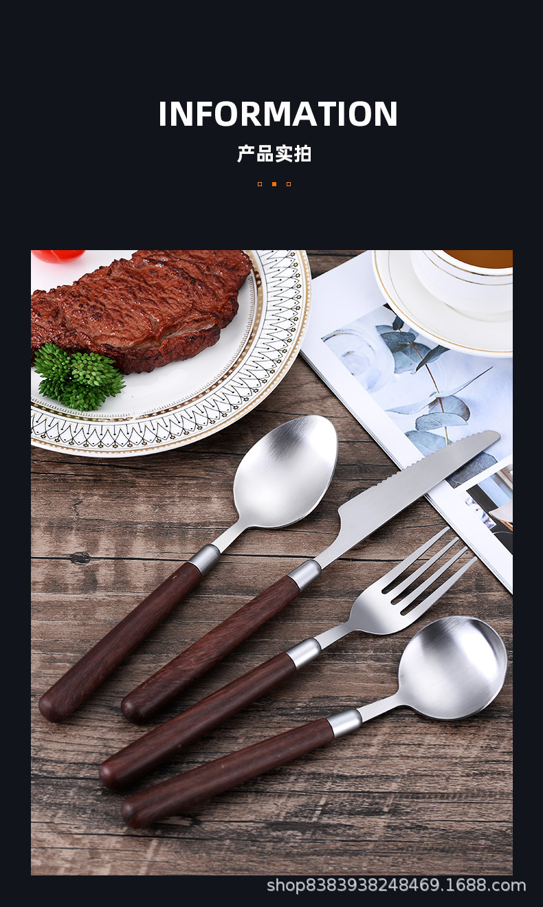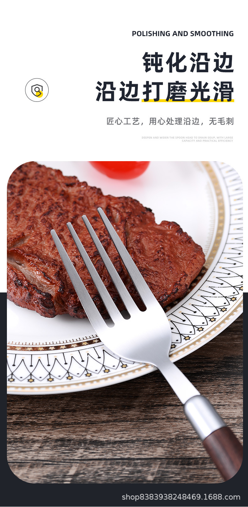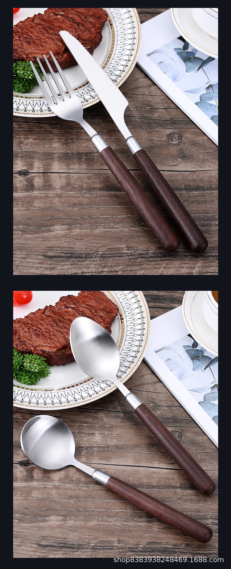 Набор столовых приборов из нержавеющей стали с имитацией орехового деревянного ручки, простая текстура, для домашней западной кухни, высококачественная посуда