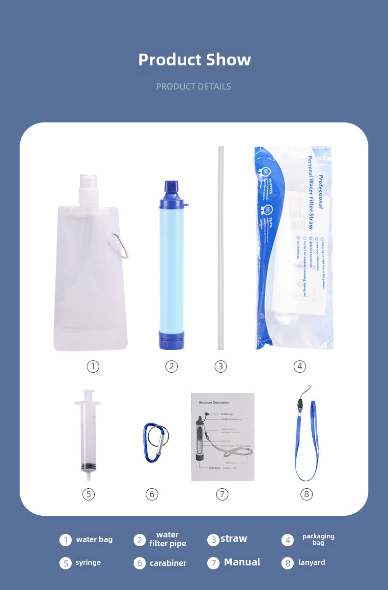 - Emergency Filtering System:This outdoor camping emergency filtering system is designed to provide clean, safe water in urgent situations, making it an essential survival tool.