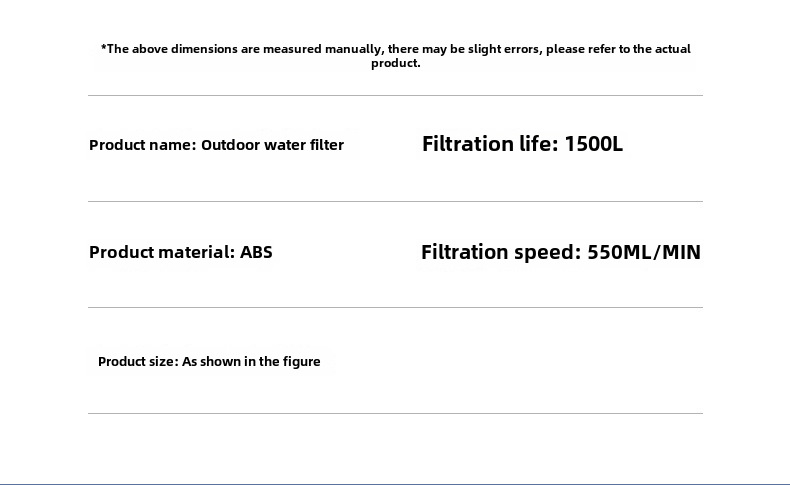 - Sport and Outdoor Use:Designed for sports and outdoor use, this filtering system is a must-have tool for any outdoor enthusiast or emergency preparedness advocate.