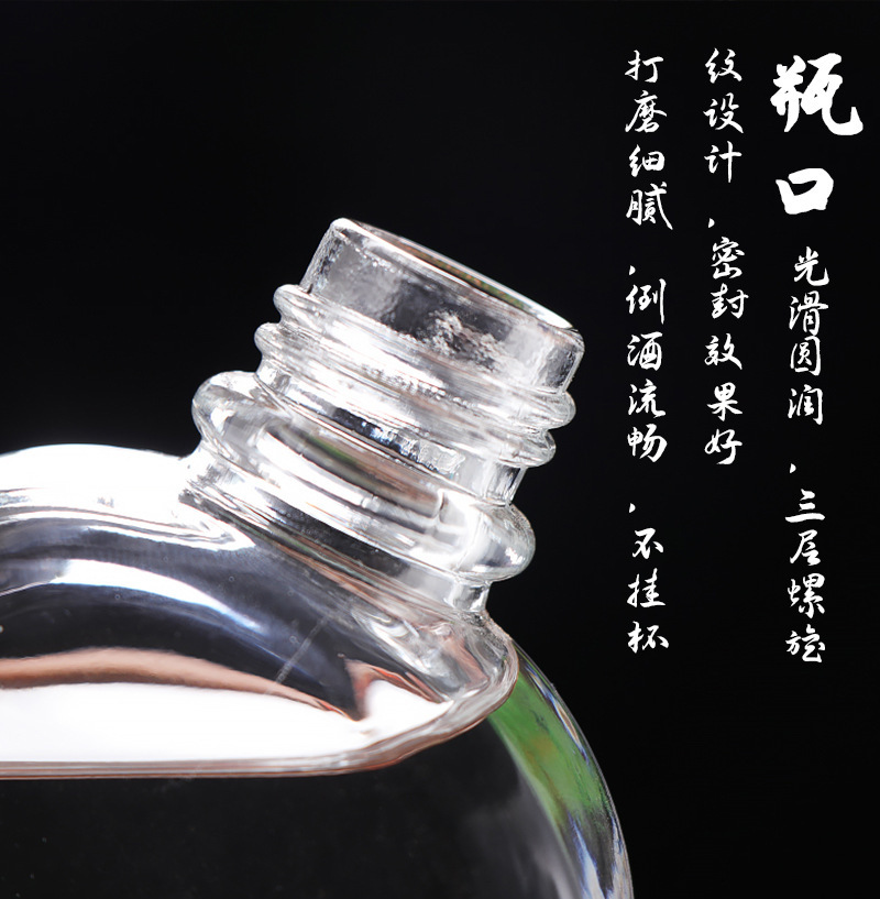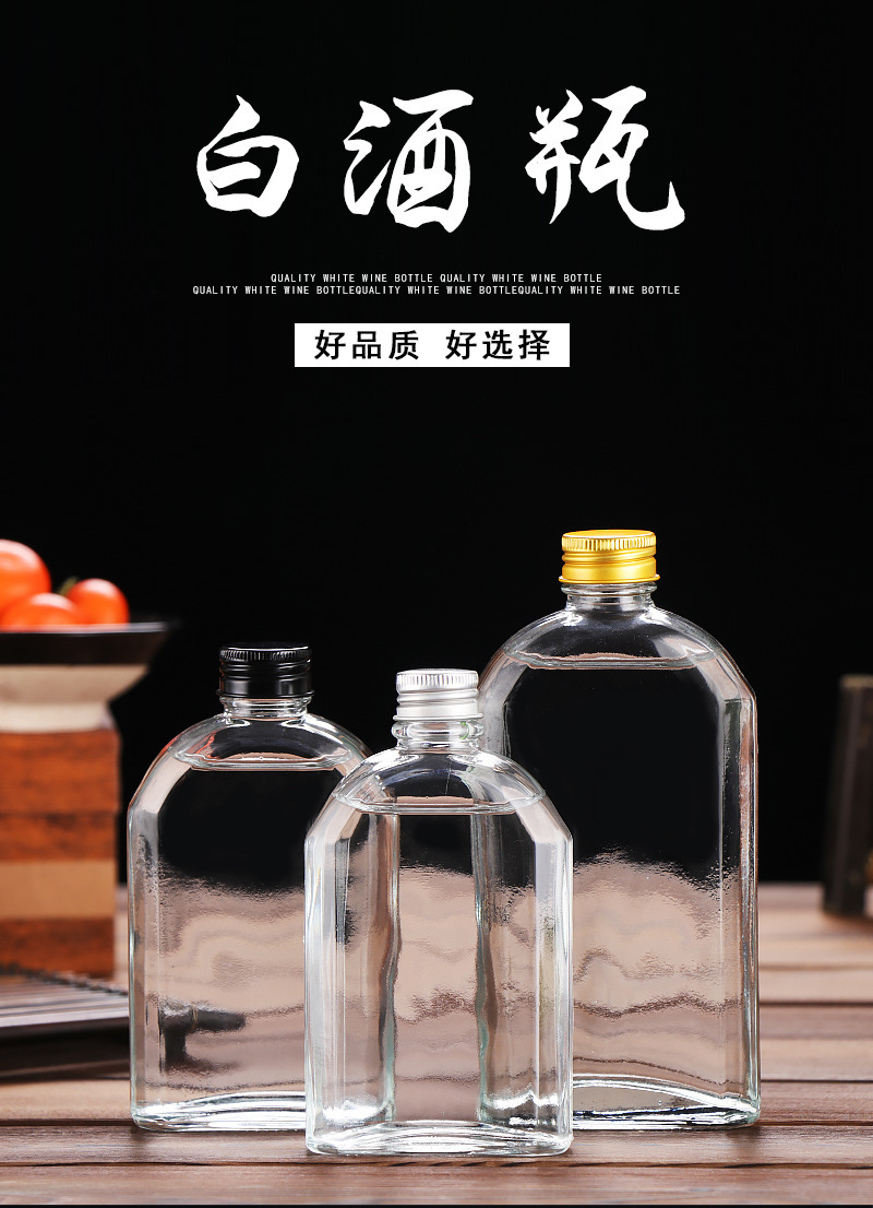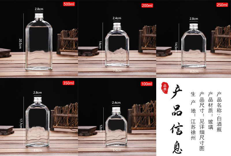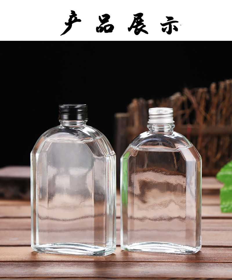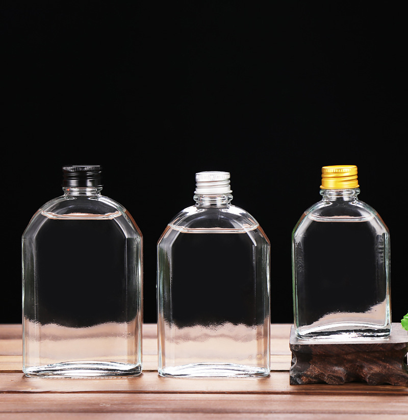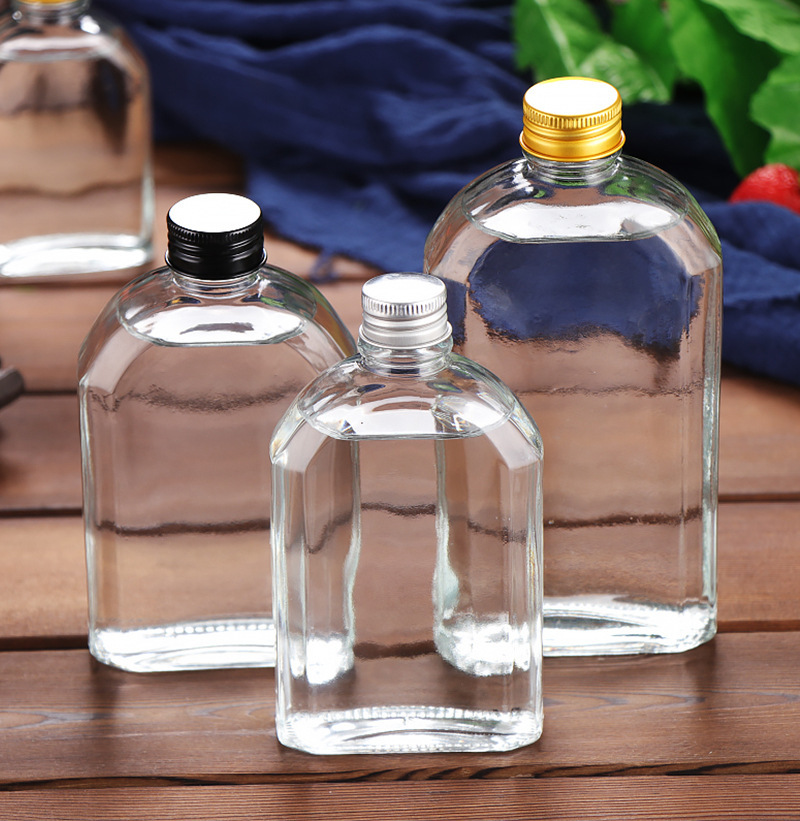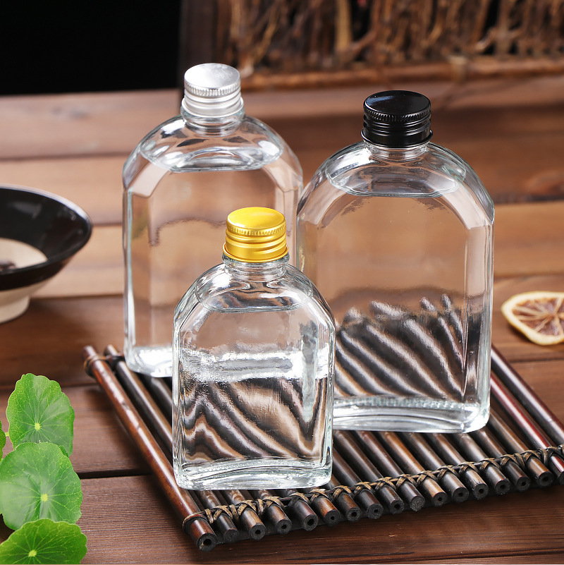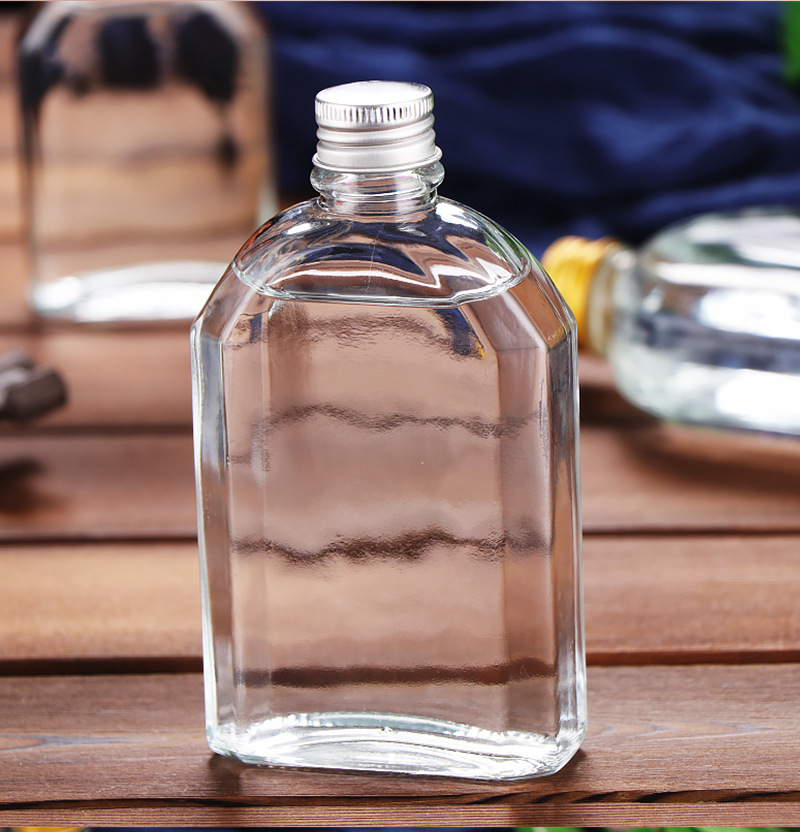 500 мл прозрачная плоская бутылка для алкоголя с плечевым дизайном, герметичная, алюминиевая крышка, стеклянная бутылка, портативная, для тестирования, пустая