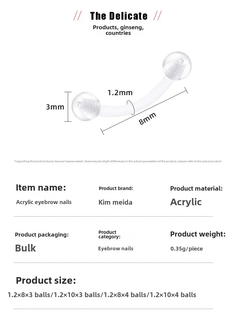 ![]() | 1.2*8*3 eyebrow nail ball | ¥0.13 / ≈ 2 ₽ | 603383 | 5996436463897 | |