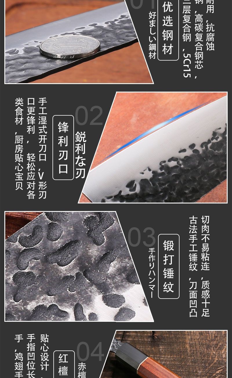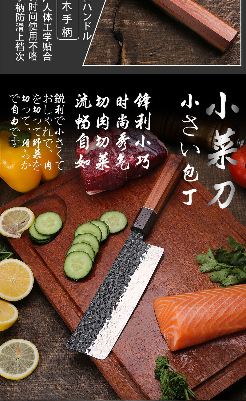 Кованый Кулинарный Нож Японский стиль Восьмиугольная ручка Эбеновый нож Ручная ковка Нержавеющая сталь Нож для нарезки 8 дюймов Малый кухонный нож