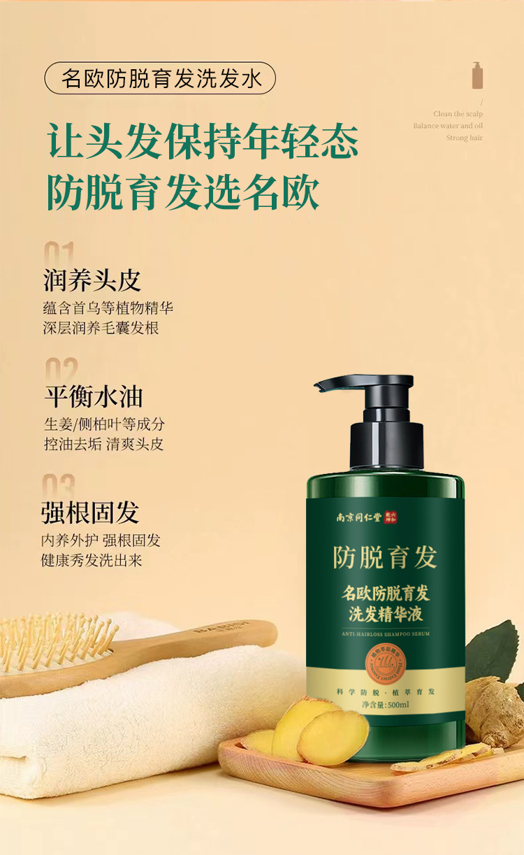 Шампунь для роста волос Nanjing Tongrentang Mingou против выпадения волос с имбирем, против перхоти, контроль масла, оригинальный продукт