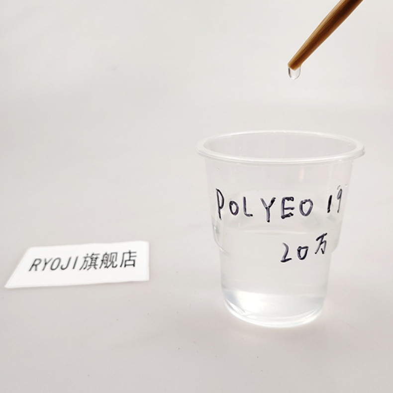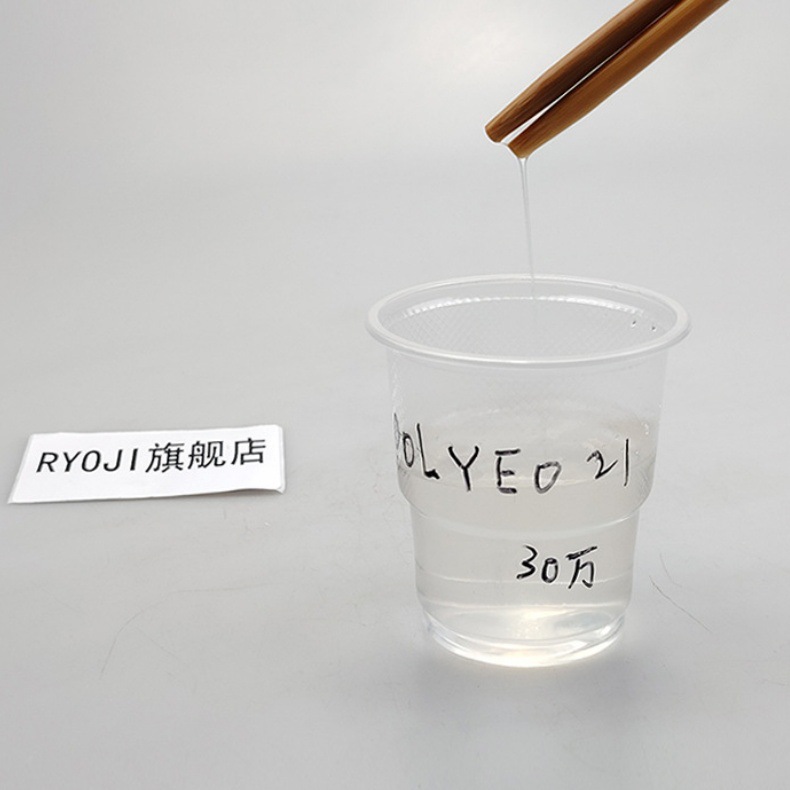 PEO1万、PEO5万、PEO10万溶解在冷水中,易溶解,没有拉丝,无沉淀物。低分子量的主要用途是分散,不容易起拉丝。