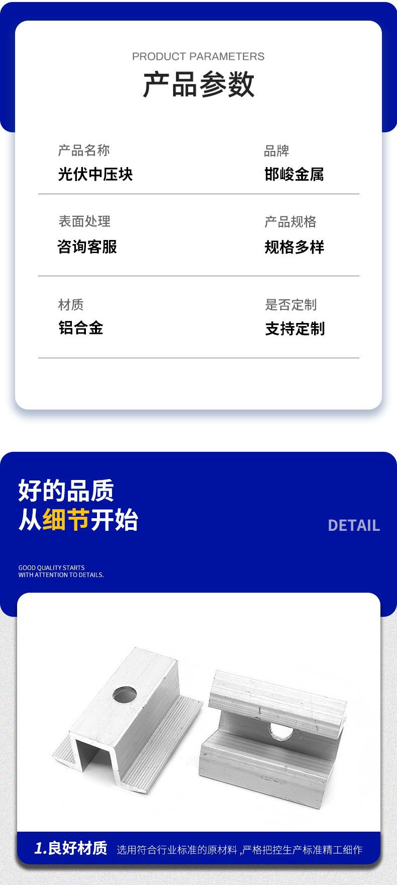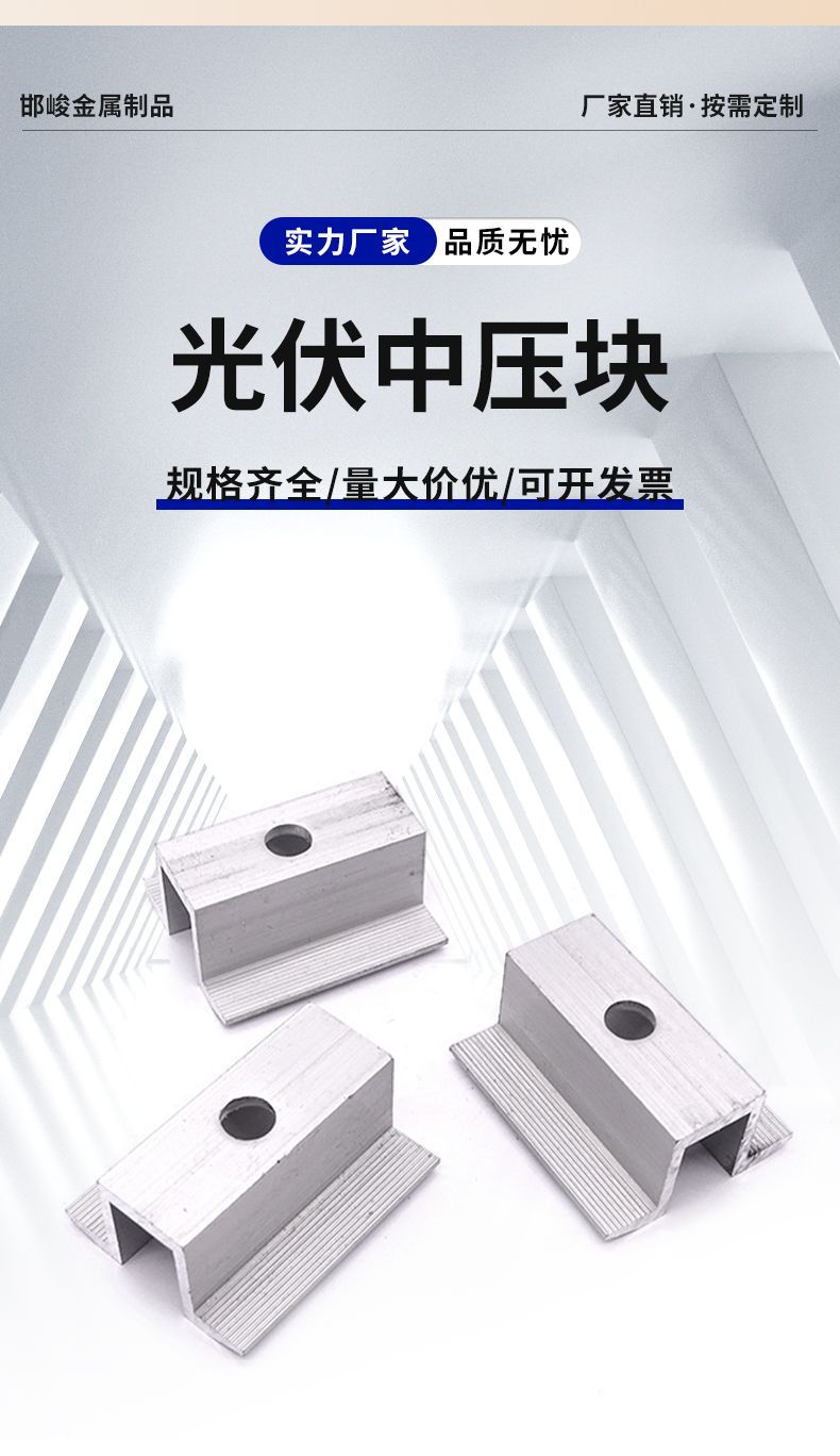 Средний блок давления для фотогальваники, крайний блок давления, алюминиевый сплав, производитель настраивает средние блоки давления для солнечных фотогальванических кронштейнов