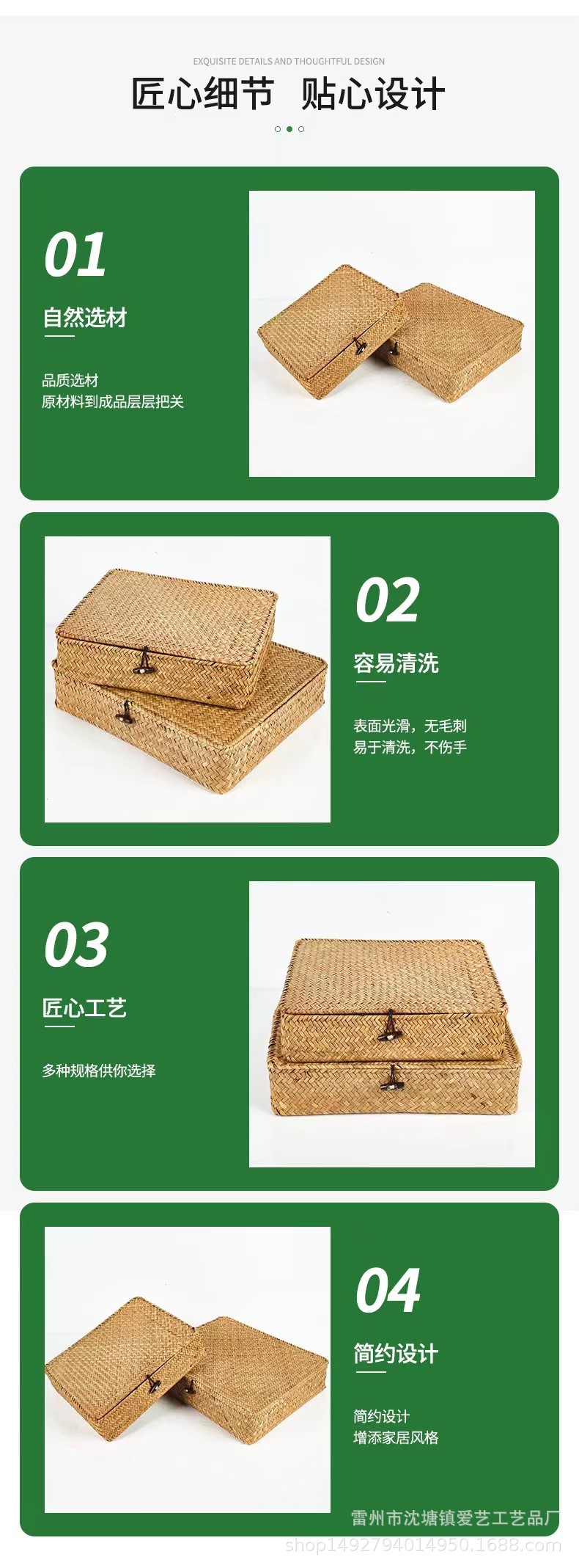 Оптовая подарочная коробка, ротанговая коробка для хранения, соломенная коробка, бамбуковая подарочная коробка с крышкой, настольная корзина для хранения