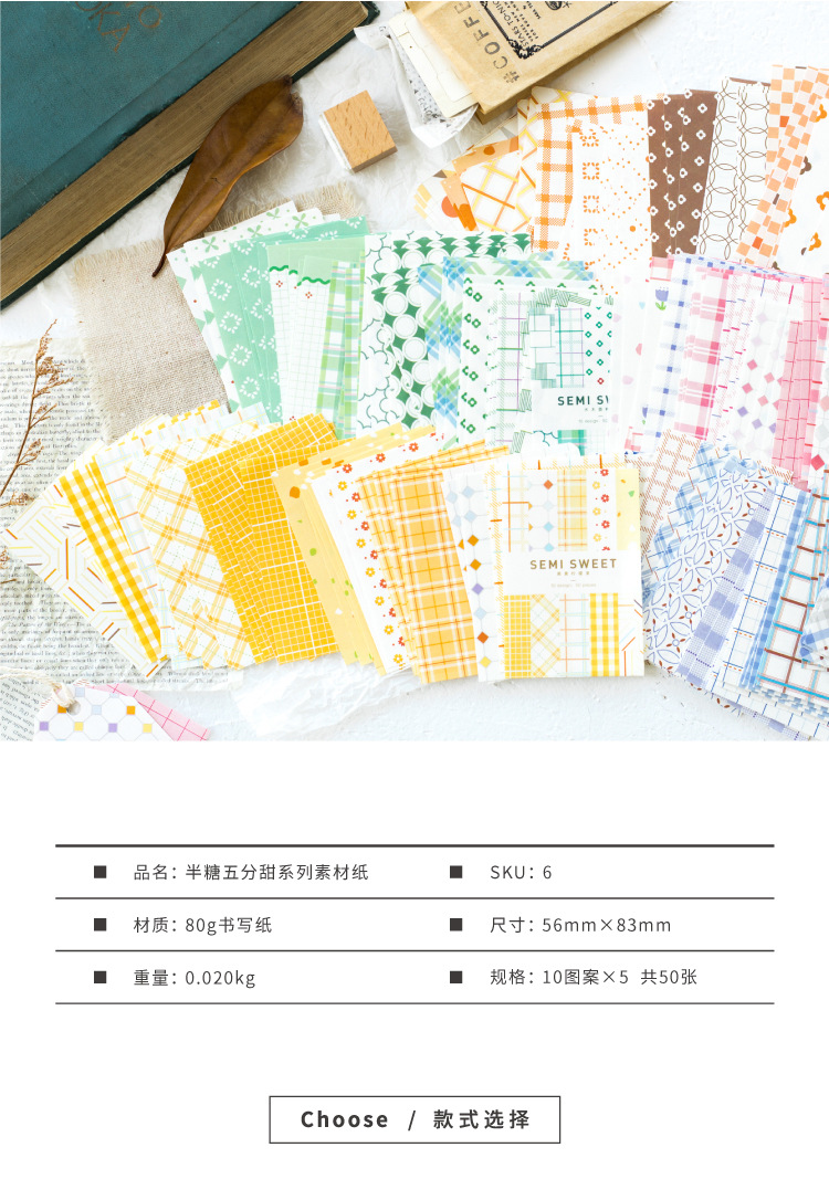 Бумага Yan Ji полусахарная пять сладких серий мелкий свежий клетчатый узор ручной учет закладка метка декор подложка
