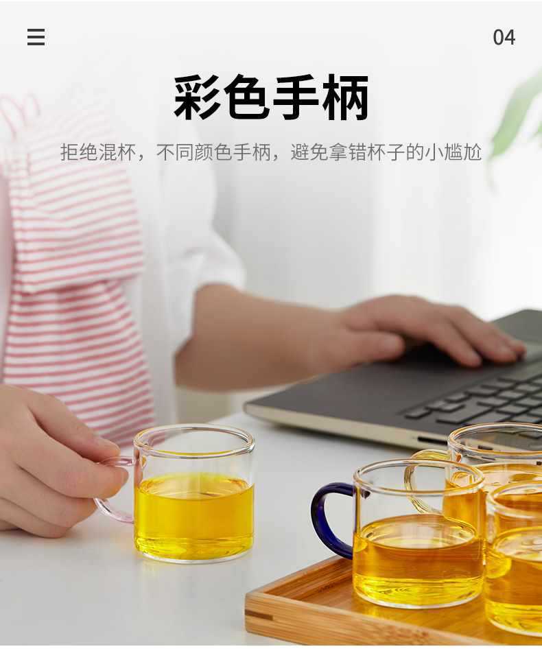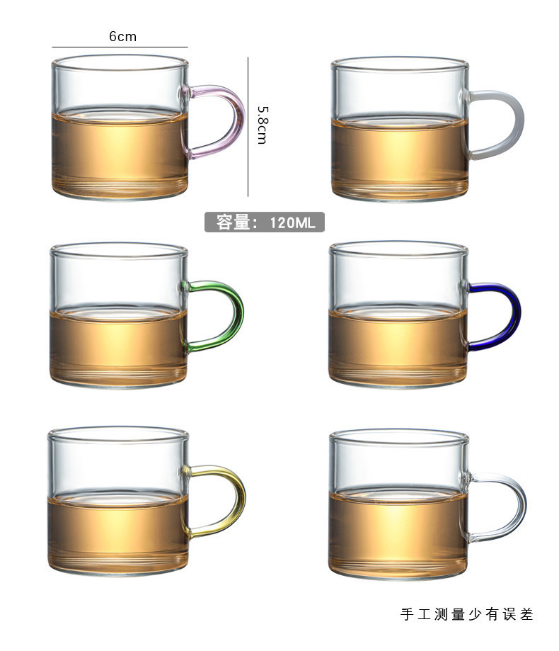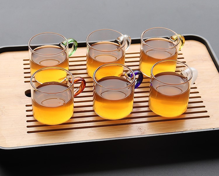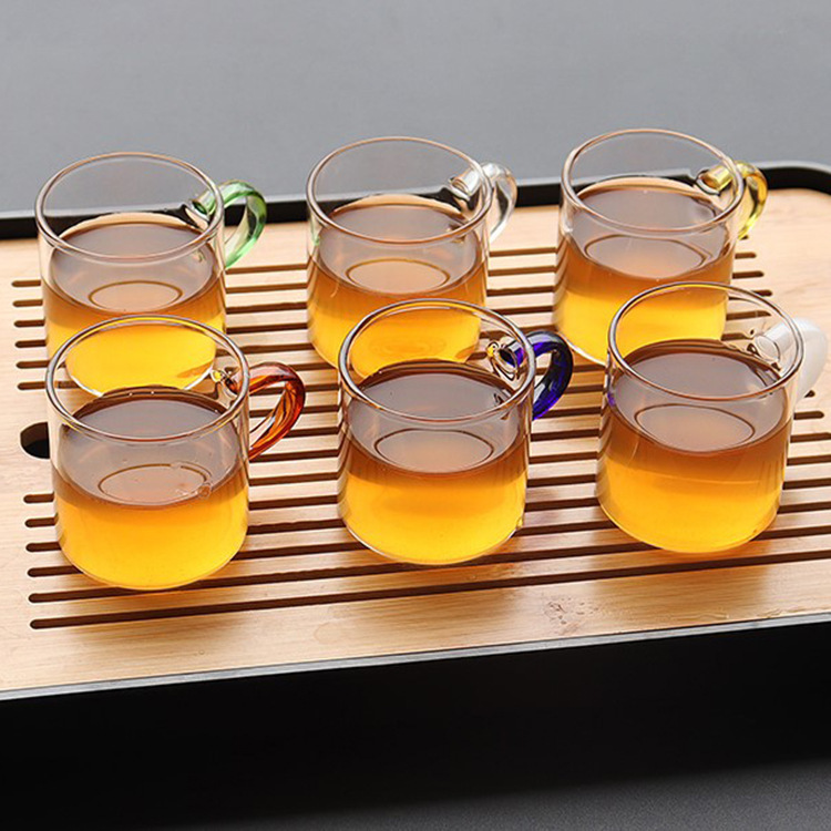 Шестицветная прозрачная чашка, чашка для дегустации чая, термостойкая стеклянная маленькая чашка для чая, домашний чайный набор, маленькая чашка с ручкой, кунг-фу, простой дизайн