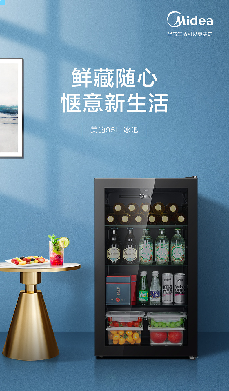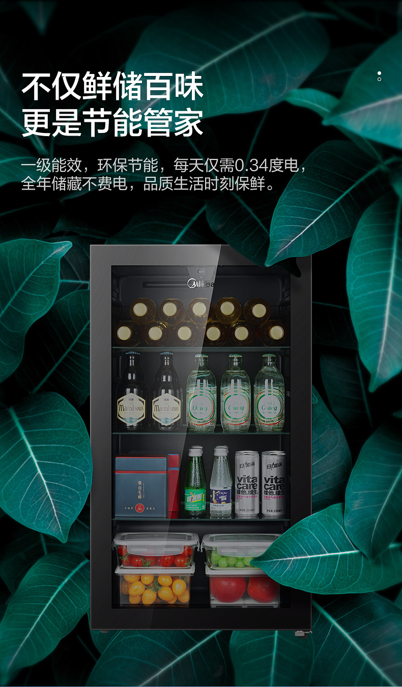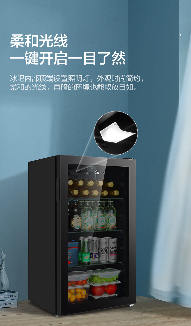 Холодильный витрина Midea, домашний ледяной бар, шкаф для хранения свежих продуктов, маленький холодильник 95L, прозрачная стеклянная дверь, морозильник для красного вина 45L