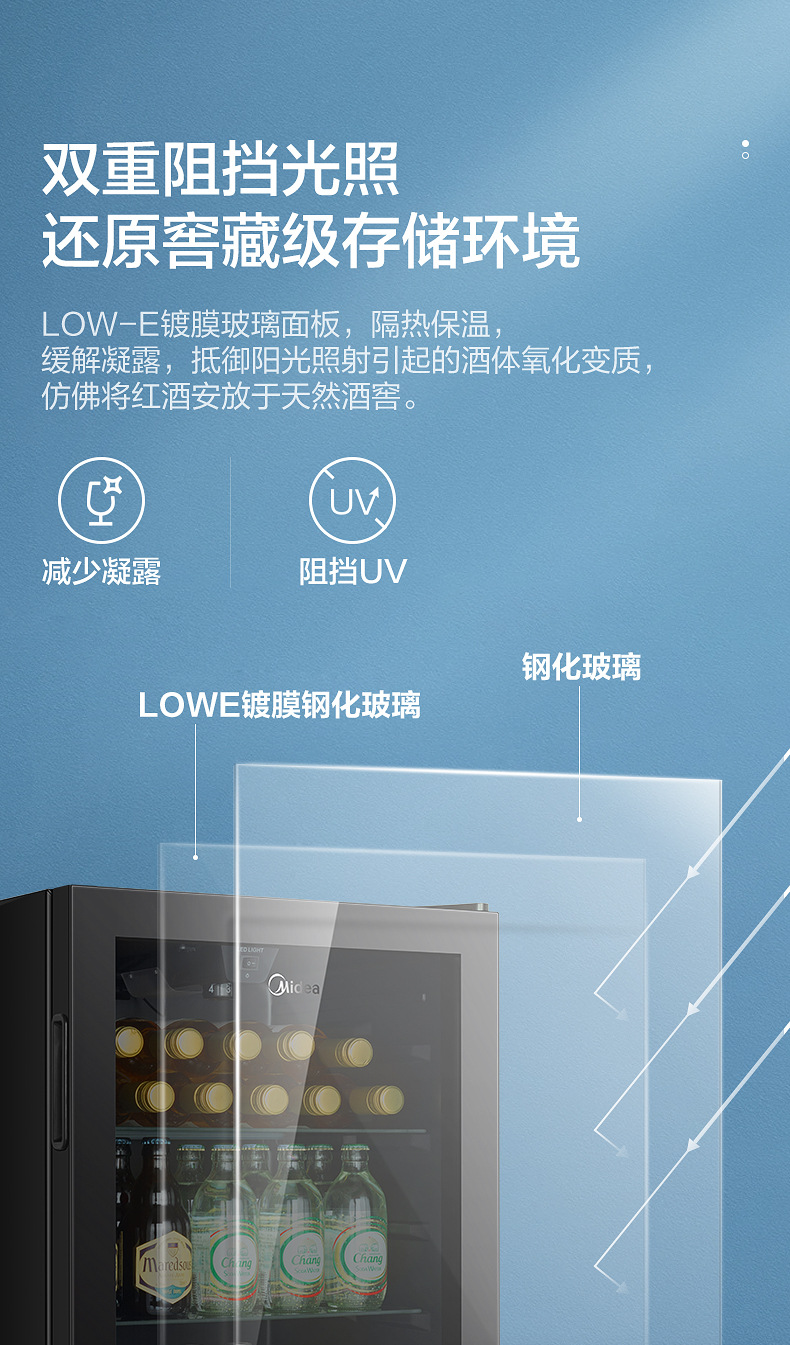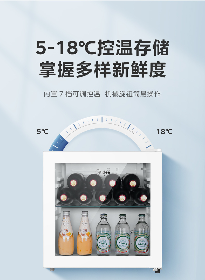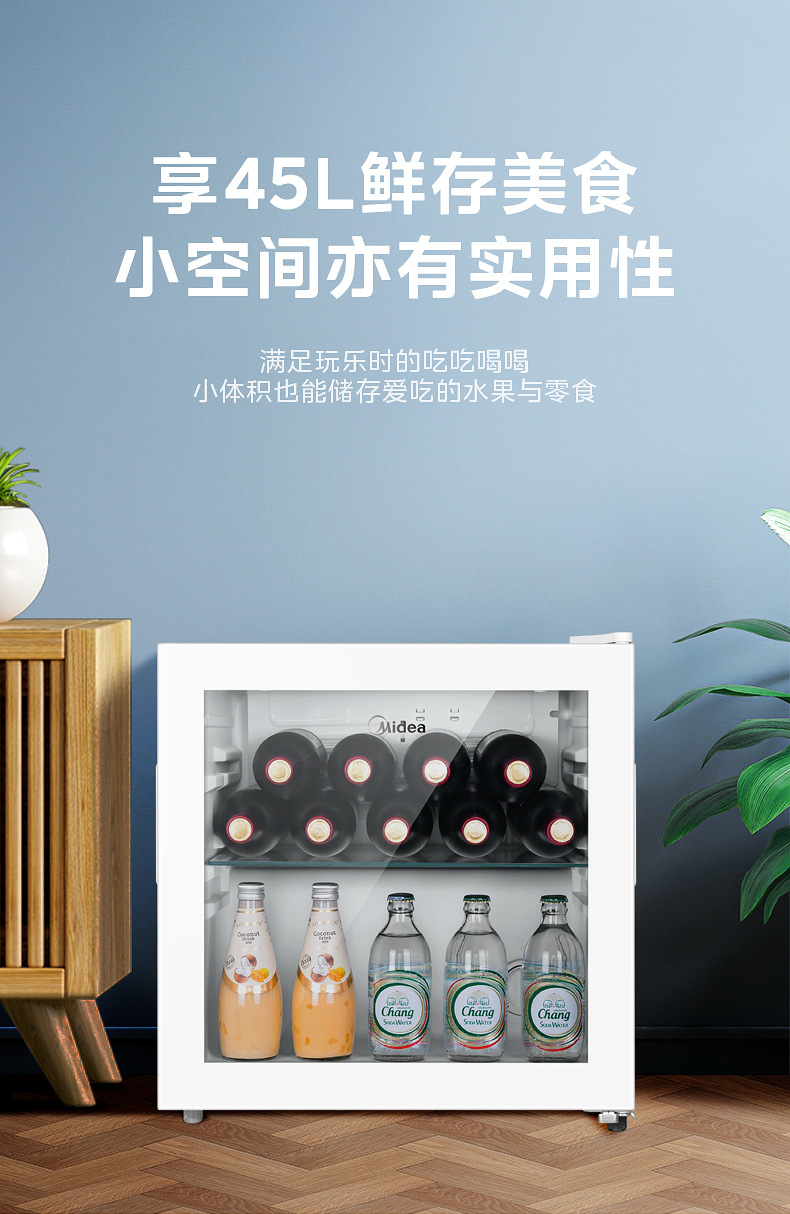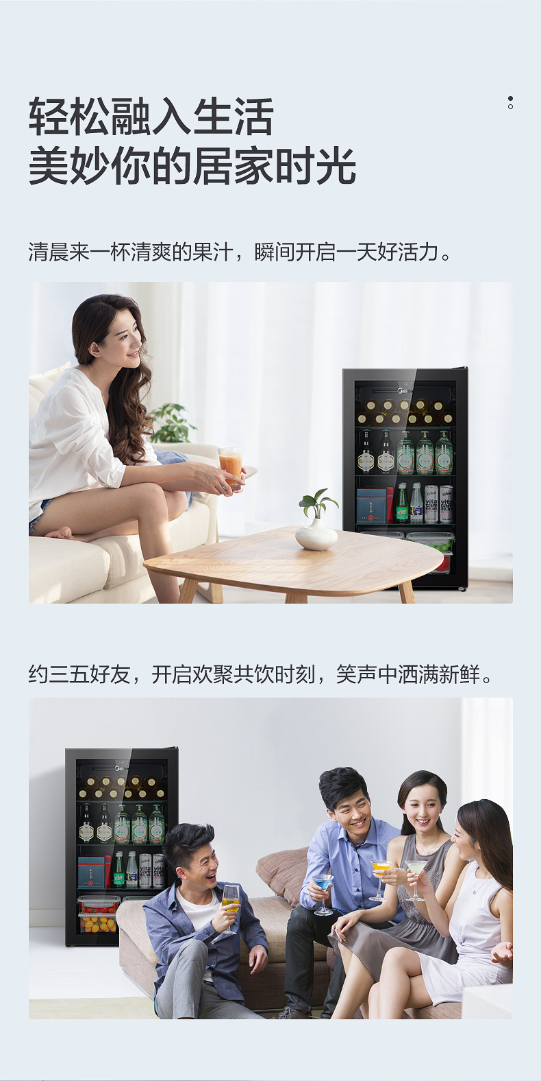 Холодильный витрина Midea, домашний ледяной бар, шкаф для хранения свежих продуктов, маленький холодильник 95L, прозрачная стеклянная дверь, морозильник для красного вина 45L