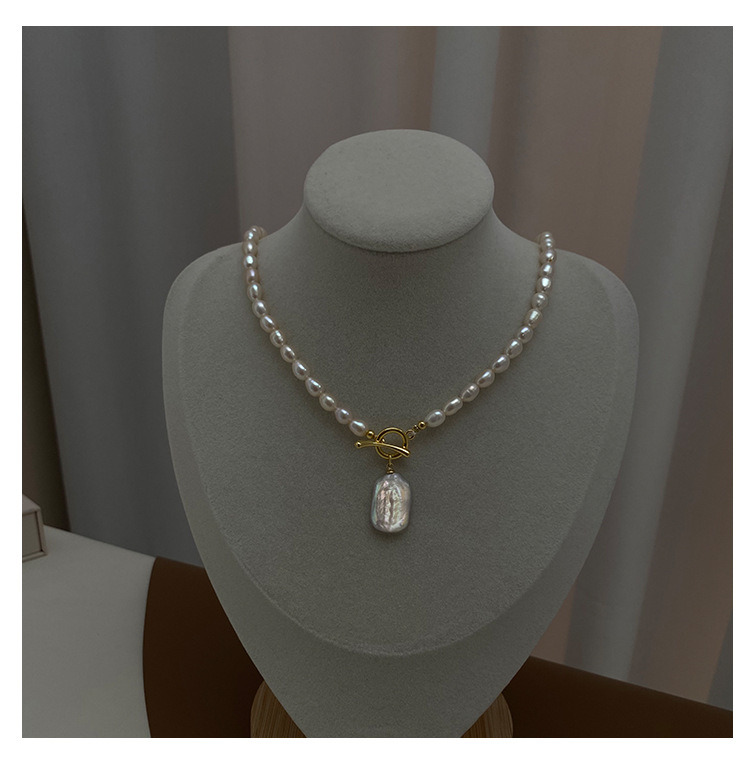 Натуральная пресноводная жемчужина Zhuji, французский квадратный кулон, высококачественное ожерелье, женская легкая роскошь, модная элегантная шершавая цепочка