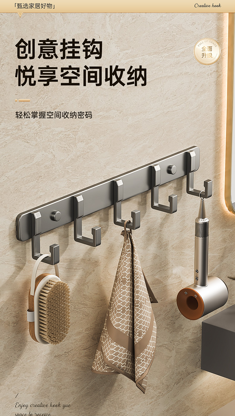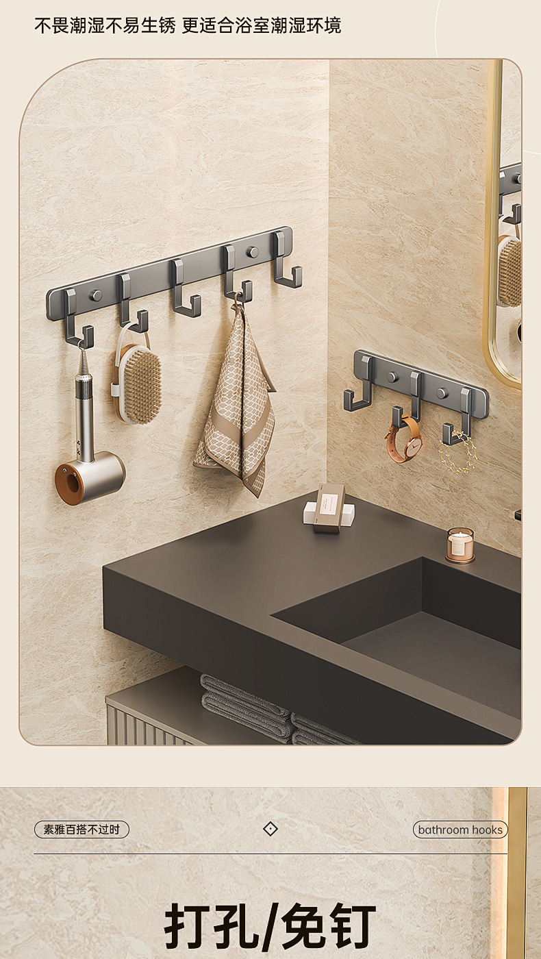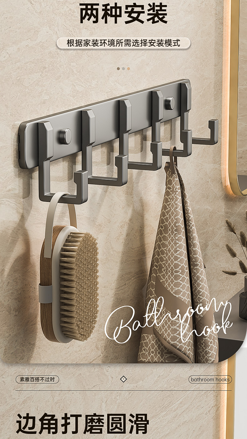 Настенный крючок для ванной, без сверления, алюминиевый, настенный держатель для полотенец