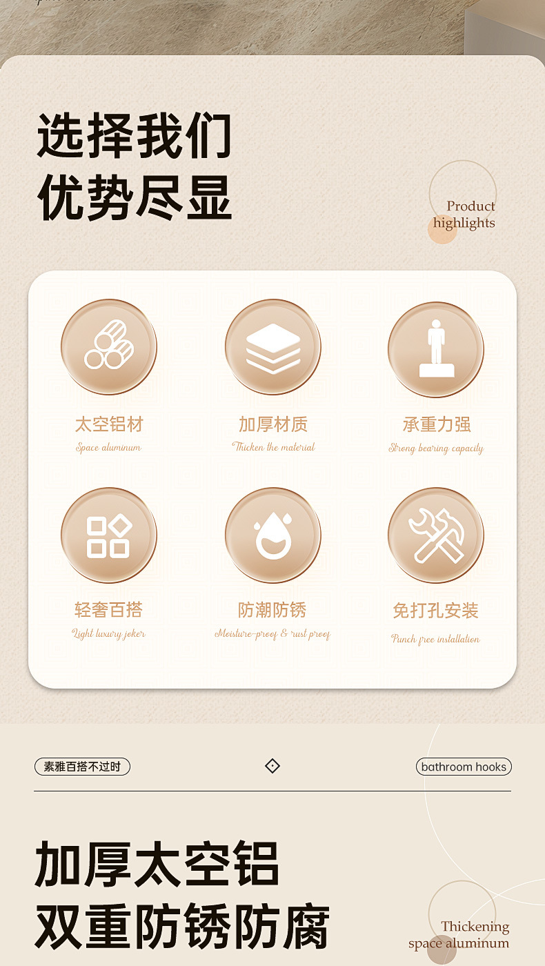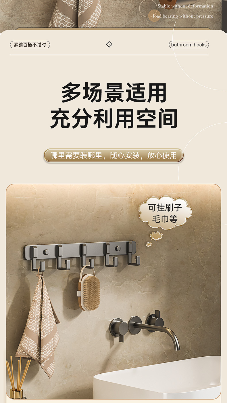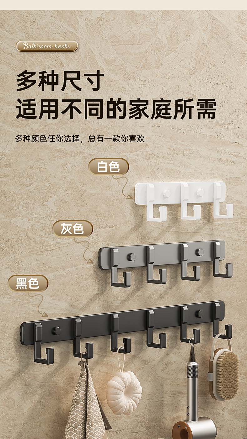 Настенный крючок для ванной, без сверления, алюминиевый, настенный держатель для полотенец