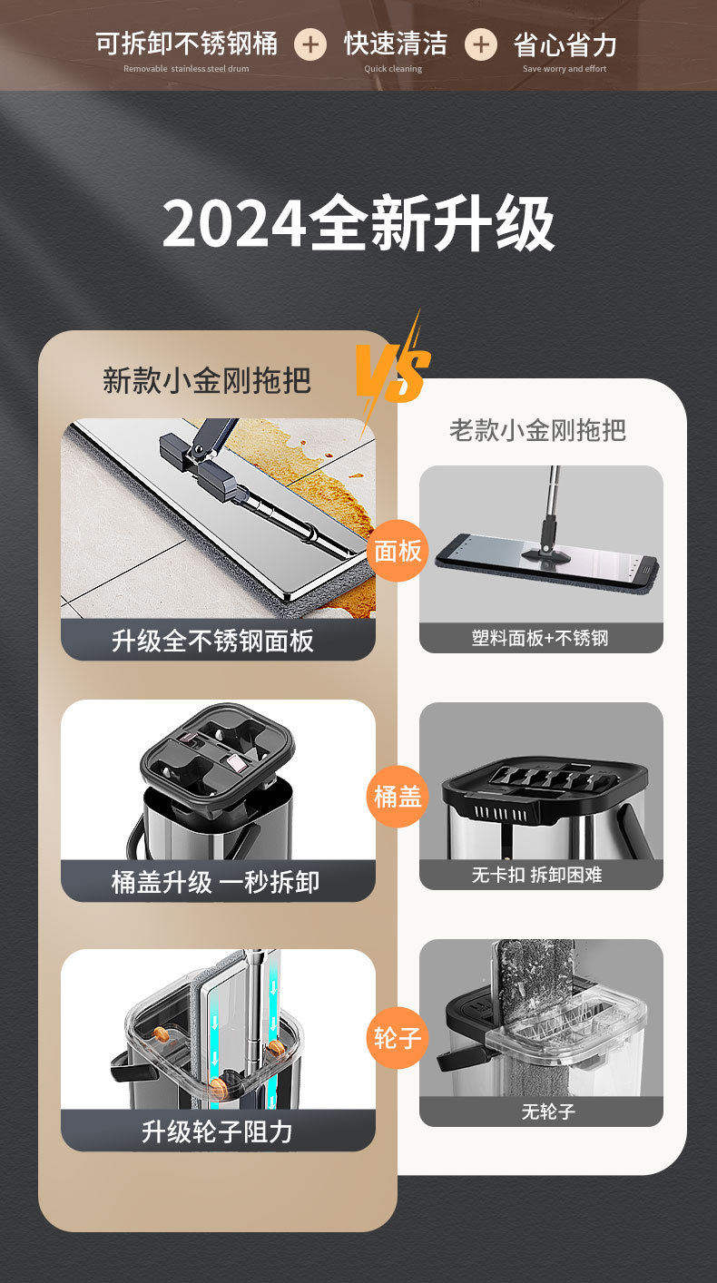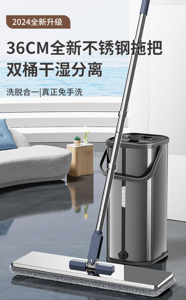 此款刮刮乐免洗拖把是本公司新设计全不锈钢身拖把桶的产品,一上市受到众多买家的青睐和喜欢!!!