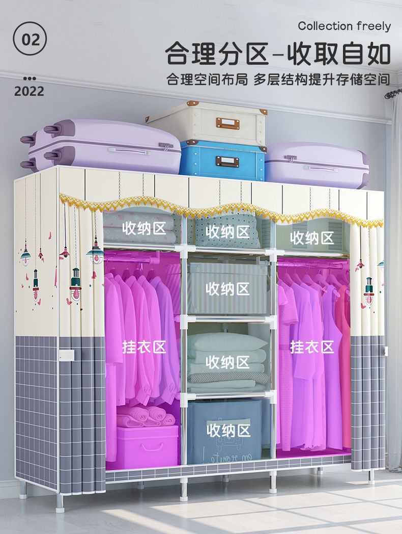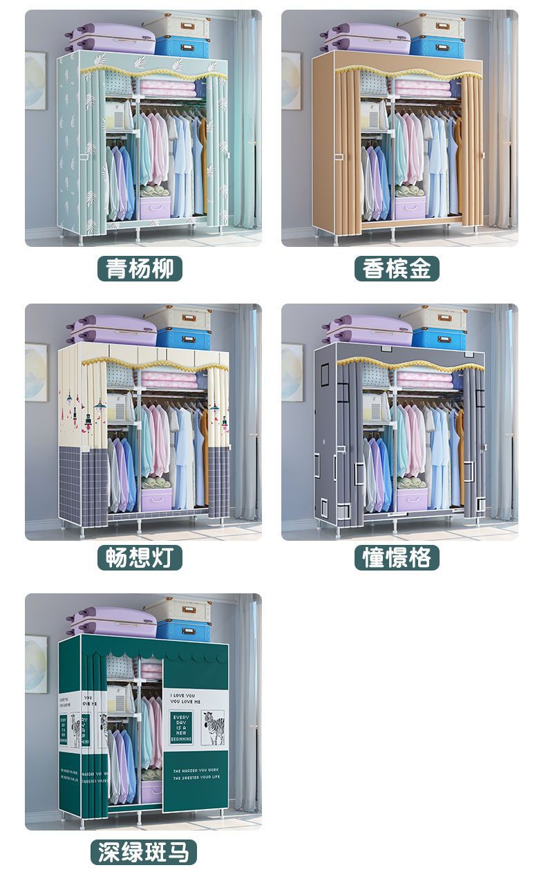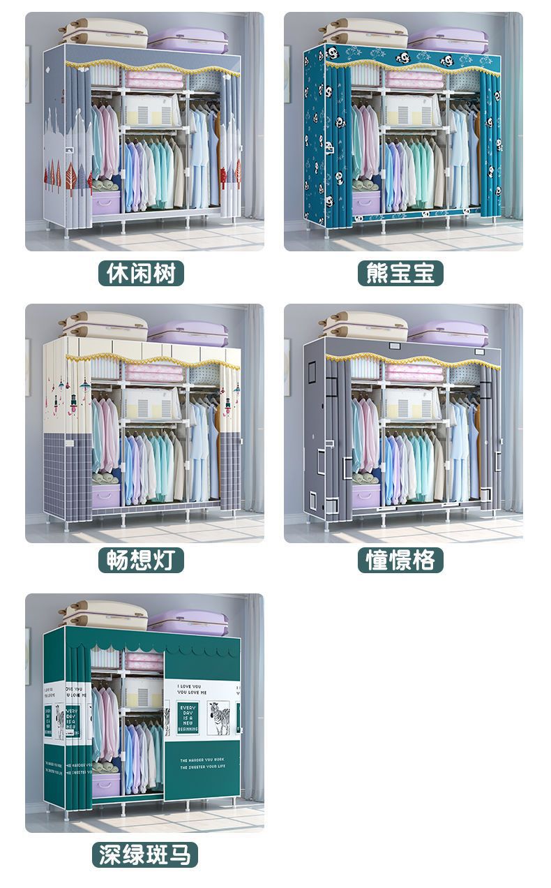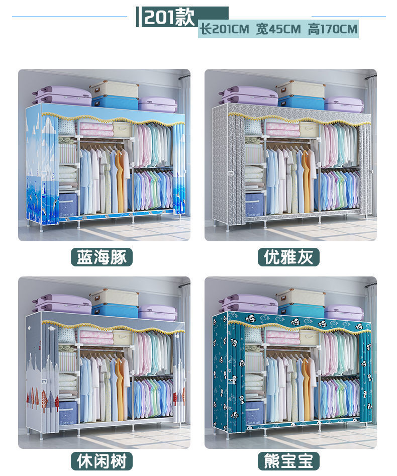 Простой текстильный шкаф для аренды, стальной трубчатый каркас, прочный, для домашнего использования, многоуровневое хранение для спальни