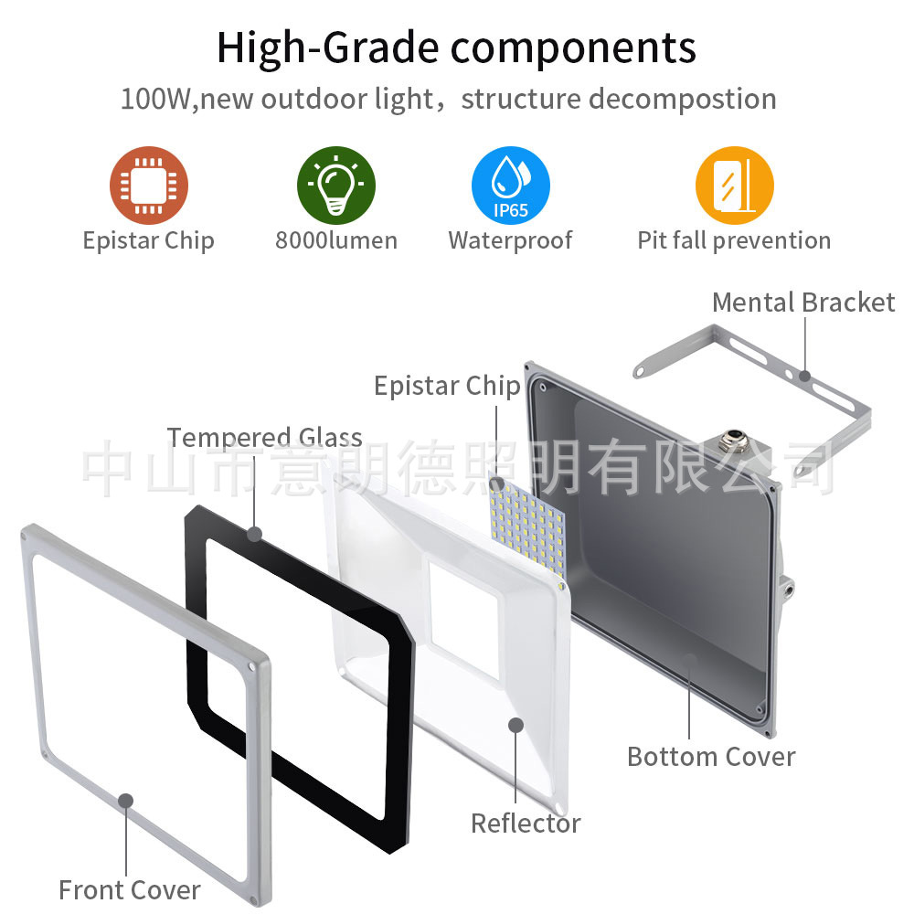 Тонкий светодиодный прожектор 10W-100W, водонепроницаемый, для гаража и склада