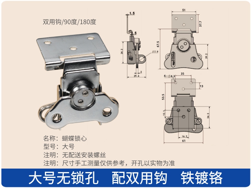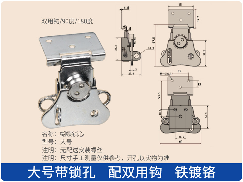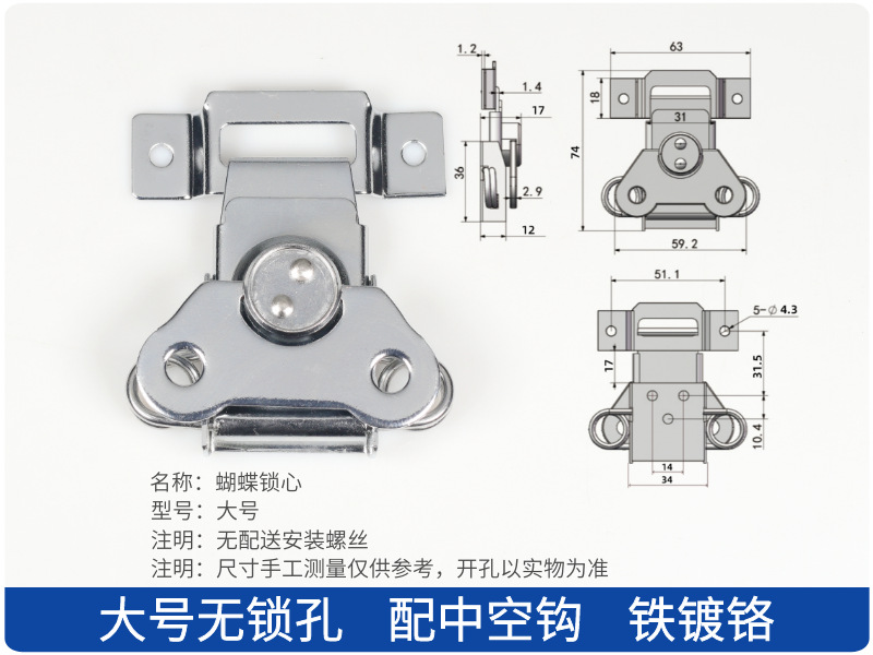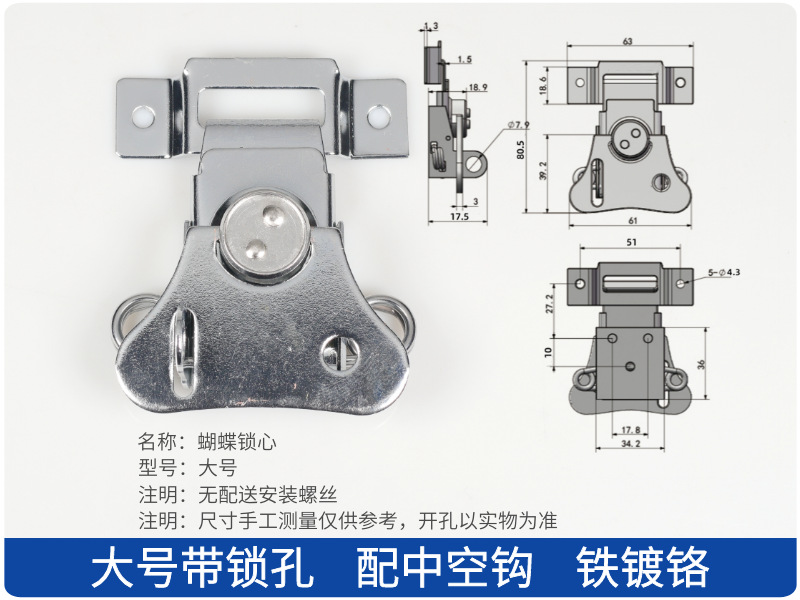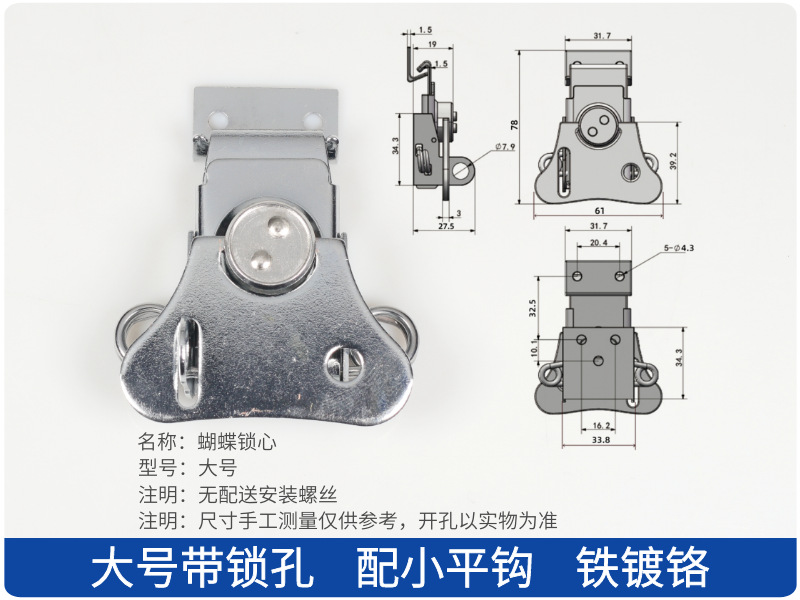Оптовая продажа фабричного черного замка-бабочки с хромированным покрытием, замок-цилиндр для авиационных коробок, транспортные аппаратные аксессуары для деревянного багажа
