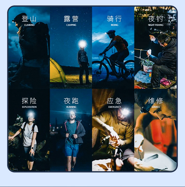 Многофункциональный налобный фонарь с индукцией, длительное время работы, яркий, для рыбалки, ночного бега, альпинизма, двойной источник света