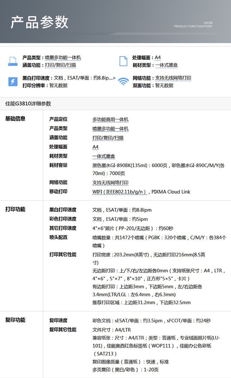 Принтер Canon G3800 с непрерывной подачей чернил, цветной струйный, фото, копирование, сканирование, беспроводной, многофункциональный офисный аппарат