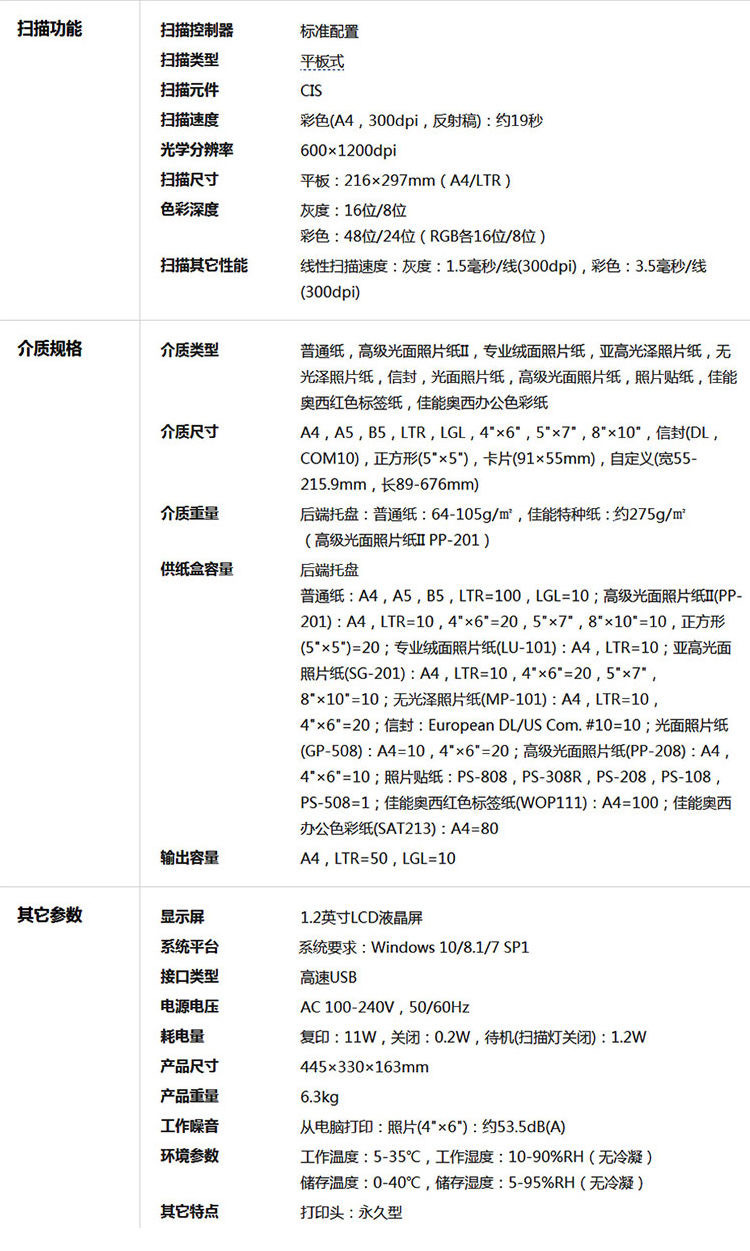 Тип печатного носителя Double-sided coarse tissue, High quality inkjet plain paper, Photo quality inkjet paper, Ordinary paper, Photo paper, High quality gloss photo paper, Photo quality inkjet card, Economic photo paper, Gloss photo paper