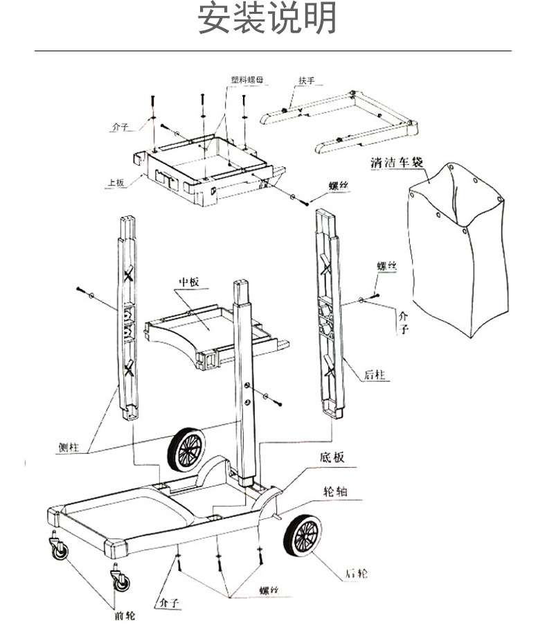 Тележка для уборки Baiyun Многофункциональная тележка для белья Инструментальная тележка Услуги по уборке Отель