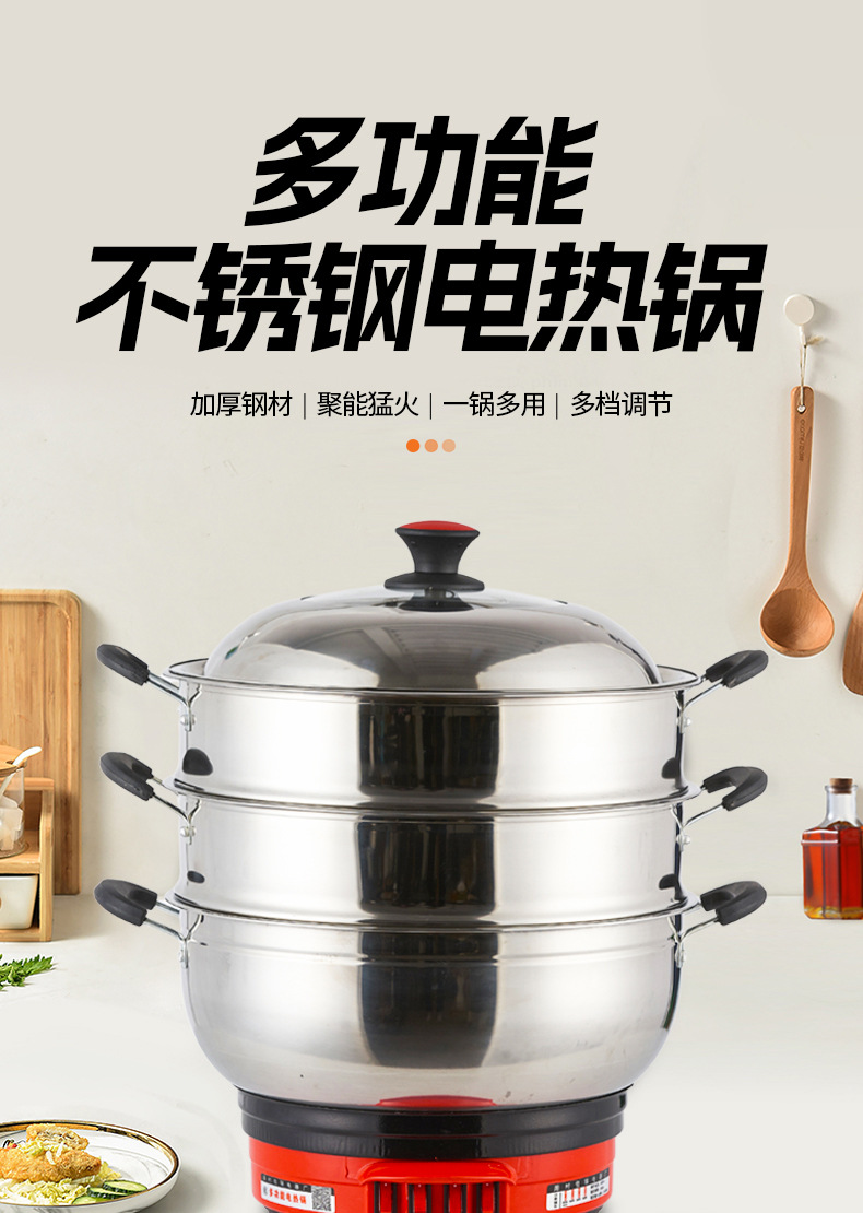 Утолщенный электрический горячий горшок из нержавеющей стали с таймером для приготовления на пару, готовки, тушения, многофункциональный горшок, подключаемый электрический горшок