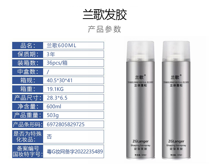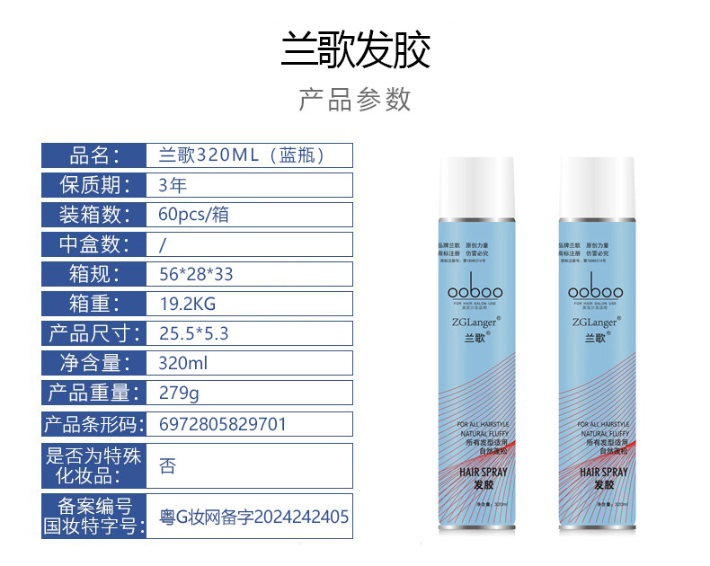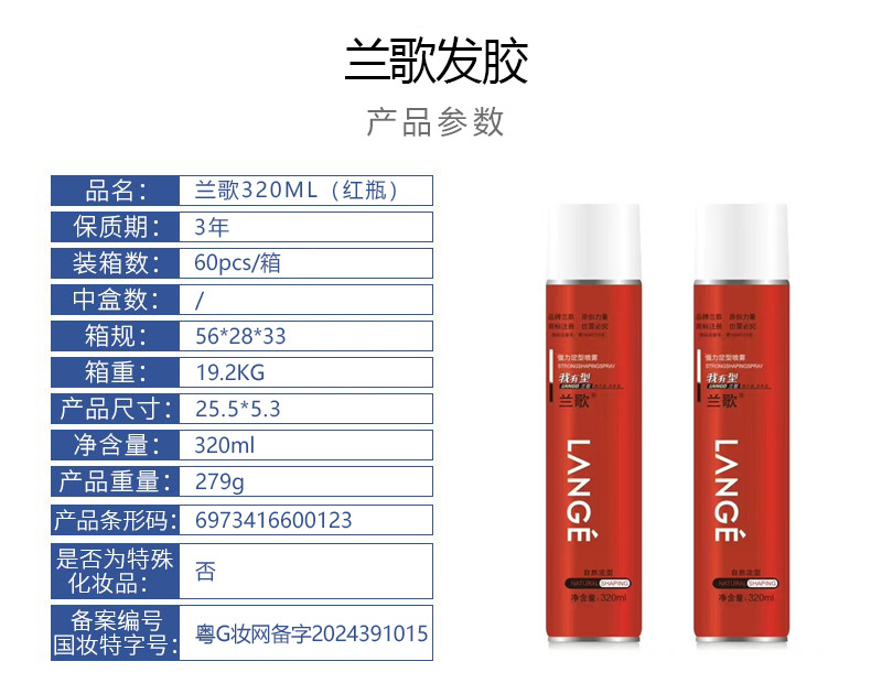 ![]() | Langge styling spray 380 (round head) | ¥4.8 / ≈ 58 ₽ | 9994 | 5935809001619 | |