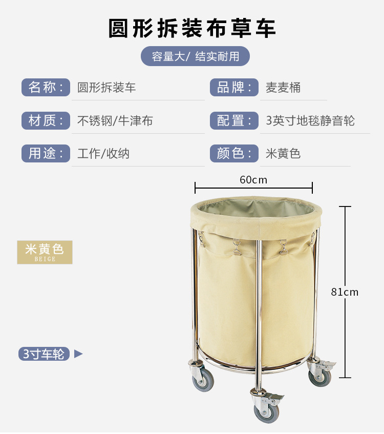Тележка для сбора грязного белья, с толстыми стенками из нержавеющей стали