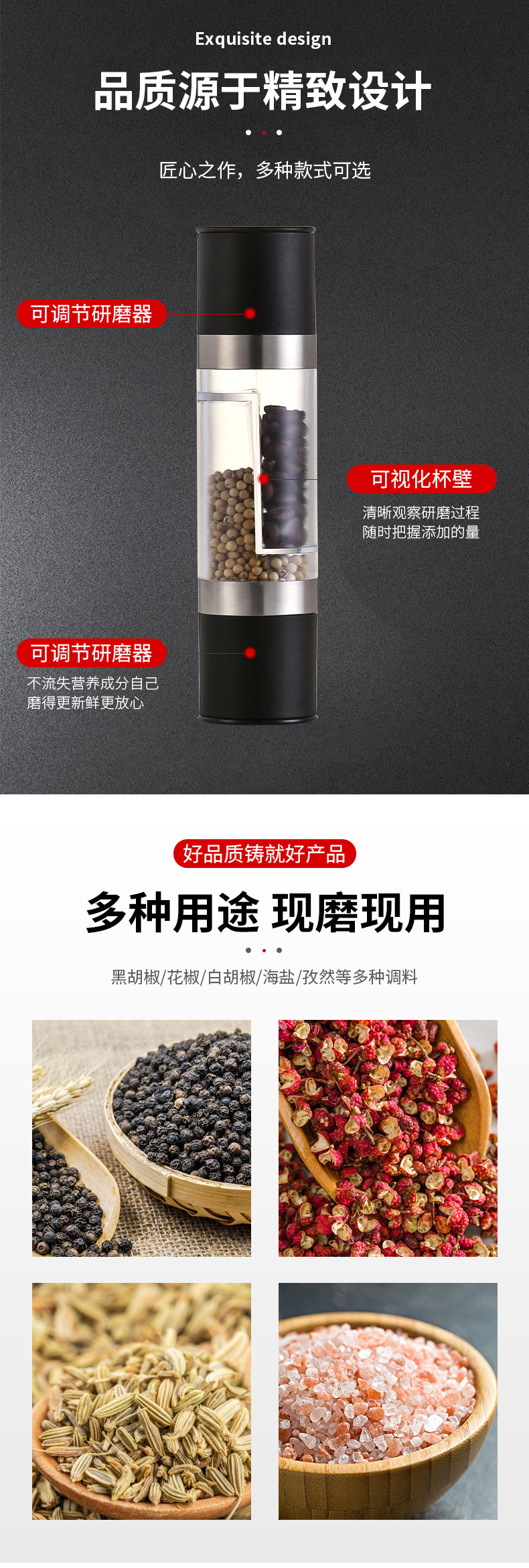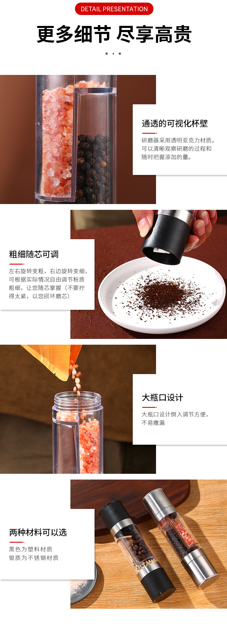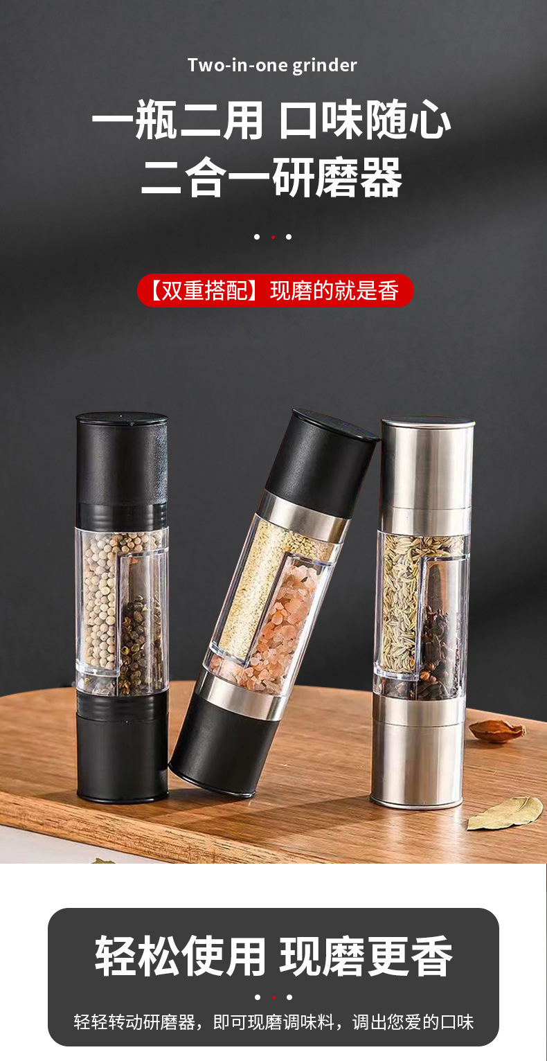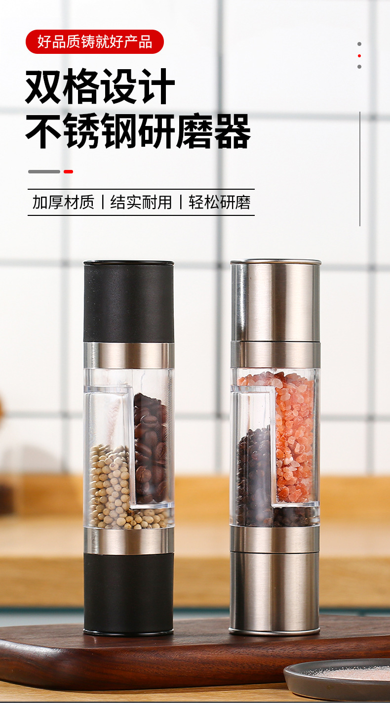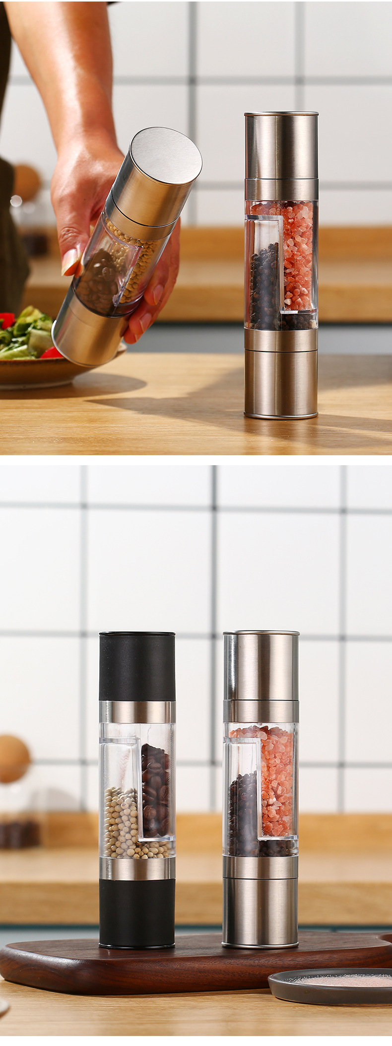 Оптовая мельница для перца и морской соли с ручной двойной головкой, регулируемая толщина