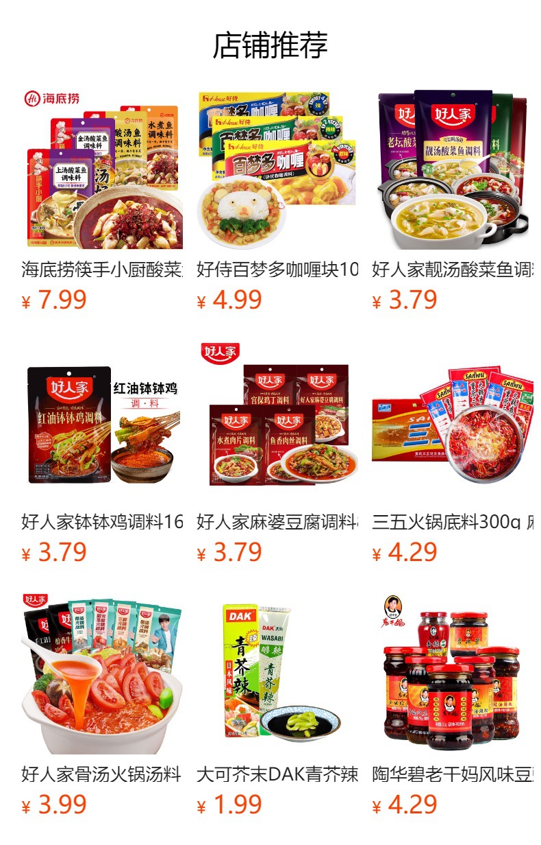 ![]() | Haidilao [yellow braised sauce] seasoning 180g (single bag) | ¥5.69 / ≈ 69 ₽ | 0 | 5547949846329 |