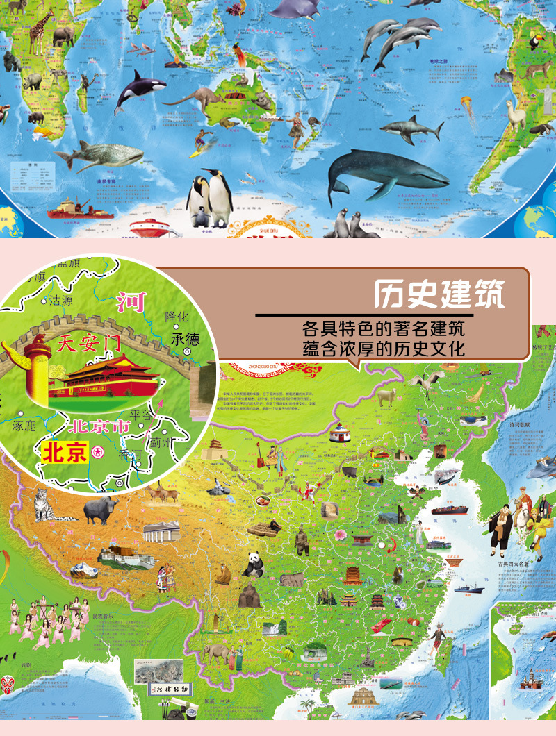 Карта Китая и мира большого размера, водонепроницаемая, специальная стендовая карта для учеников начальной школы, наклейка для детей, географическая карта