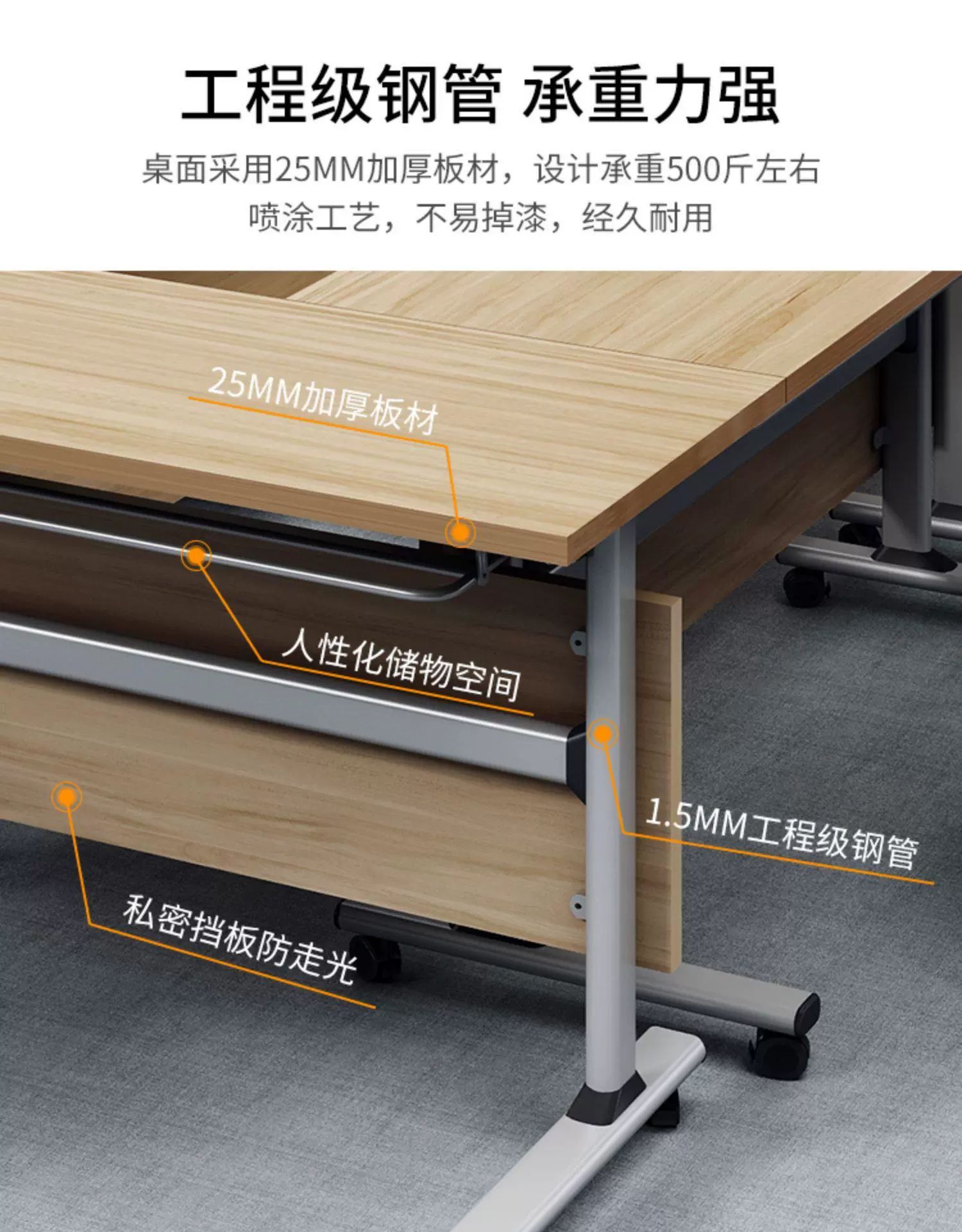 Складной конференц-стол, комбинация из двух столов, стол для образования и тренингов, мобильный соединяемый длинный стол