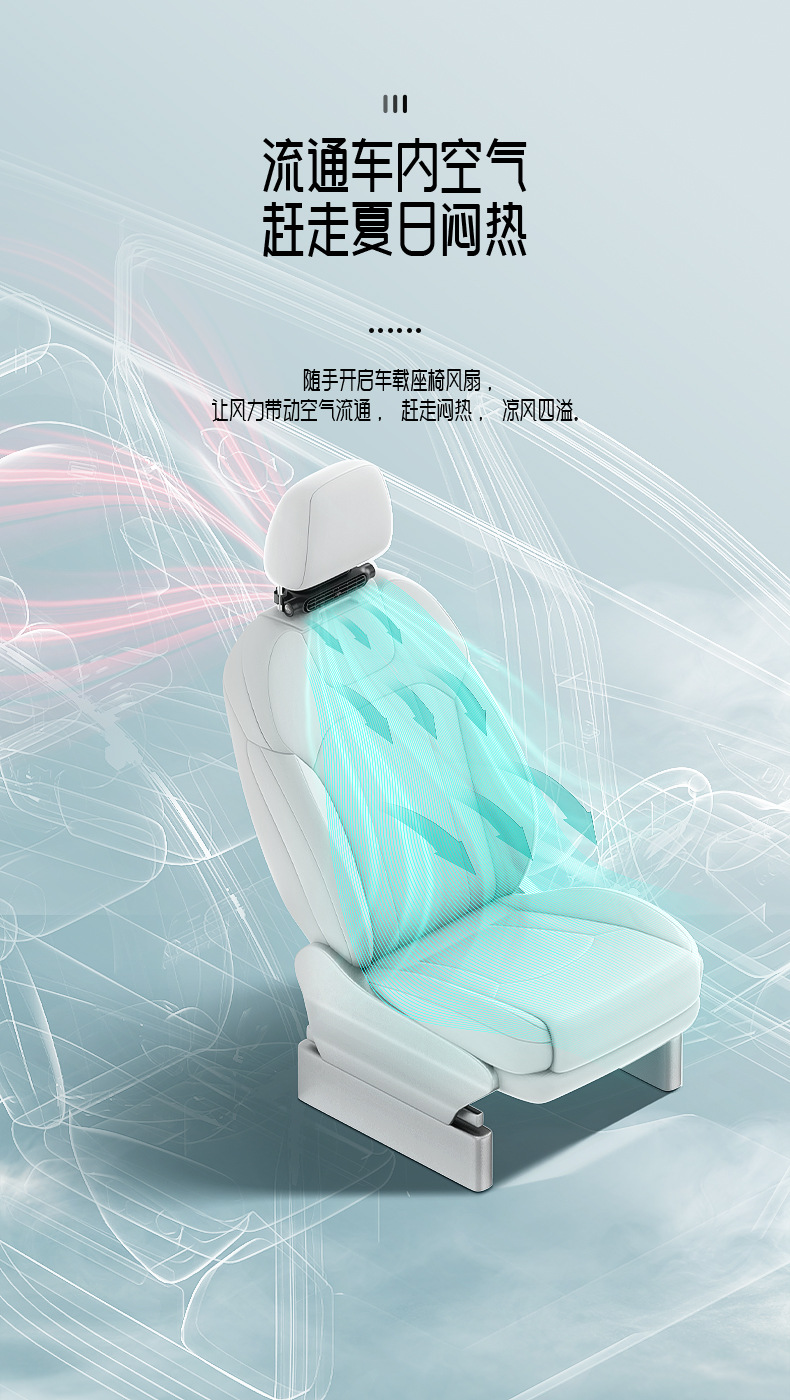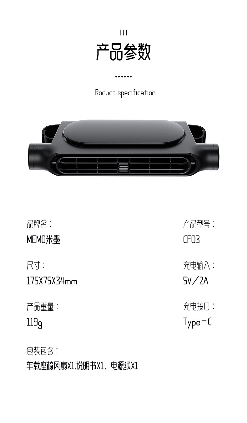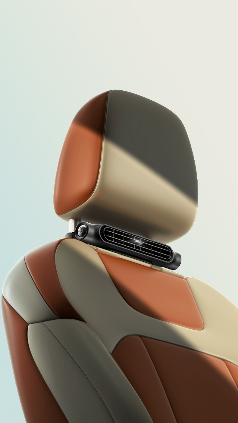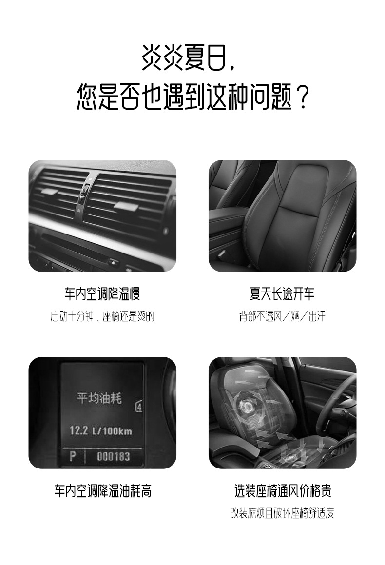 产品使用魔术贴两边固定的设计,让产品在使用过程不颠簸移动;在汽车座椅靠背合适的位置上,粘上魔术贴固定,通电后按开关键即可使用。