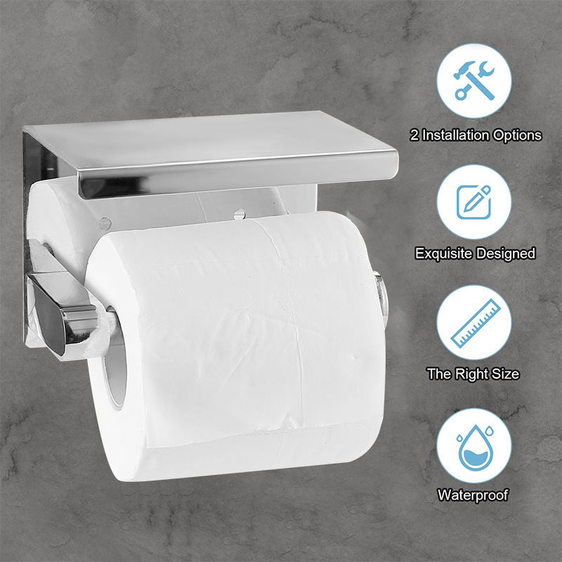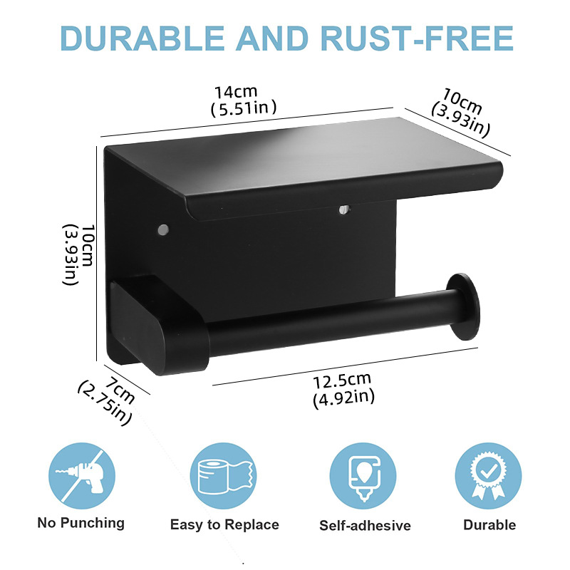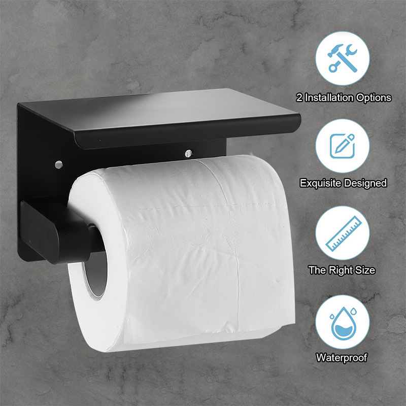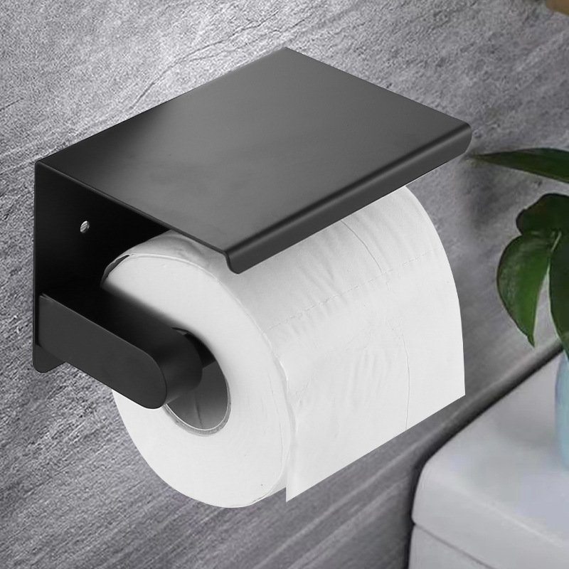 Держатель для туалетной бумаги для мобильного телефона, без сверления, из нержавеющей стали, черный, держатель для рулонов бумаги для ванной